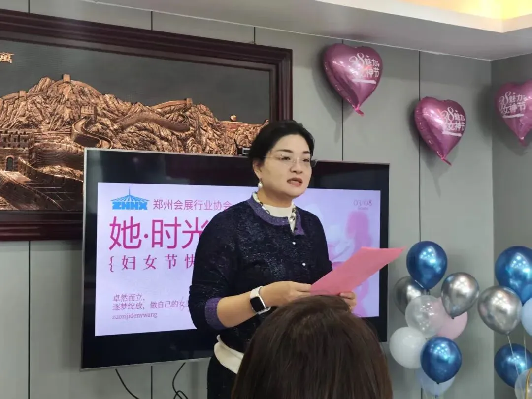 活动由郑州会展行业协会副书记邵翠平担任主持,她以“时光花园的总规划师与首席园艺师”为喻,深情致辞:“无论是会展行业在时间轴上起舞的‘规划师’,还是农资行业在田野间深耕的‘耕耘者’,女性都在各自的领域用坚韧与智慧浇灌出繁花似锦。今天,我们打破行业壁垒,让不同赛道的女性力量在此交汇、共振。”