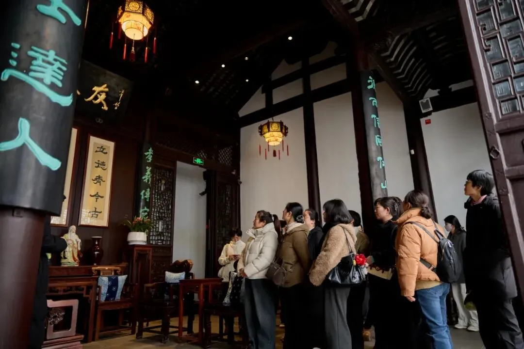 女职工们走进“九十九间半”的甘熙宅第,开启沉浸式非遗之旅。在讲解员带领下,大家穿行于青砖小瓦间,探访非遗展厅,近距离感受指尖匠心。驻足传承人工作室,女职工们在百年老宅中聆听金陵文脉,于古今对话间绽放文化滋养下的女性风采。
