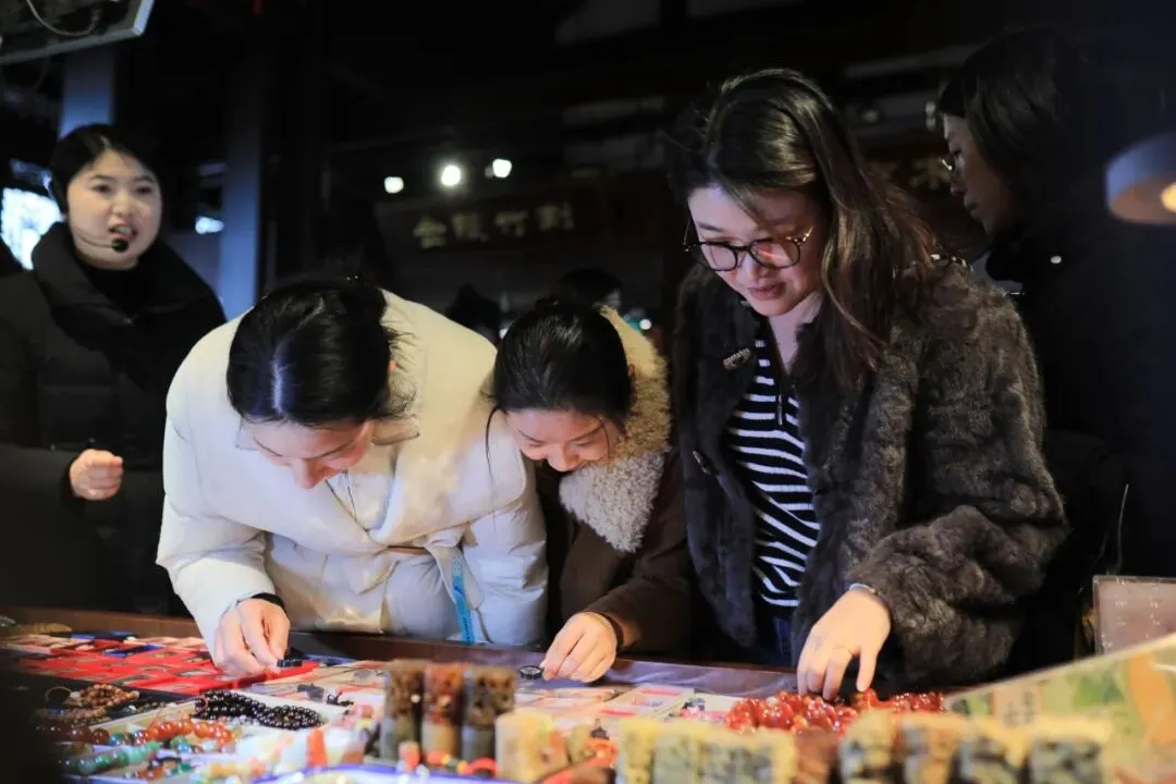 连廊下、花灯墙旁,女职工们定格下与非遗相遇的最美瞬间——手作时的专注、闺蜜间的笑语,都被一一定格成三月记忆。随后,大家漫步熙南里青石板路,在老字号与文创小店间流连,或探店寻趣,或闲坐畅谈。从甘熙宅第的雕花门楣到街巷深处的烟火气息,半日的城市行走,让女职工们在非遗滋养中卸下匆忙,于春日暖阳里绽放自信笑颜。