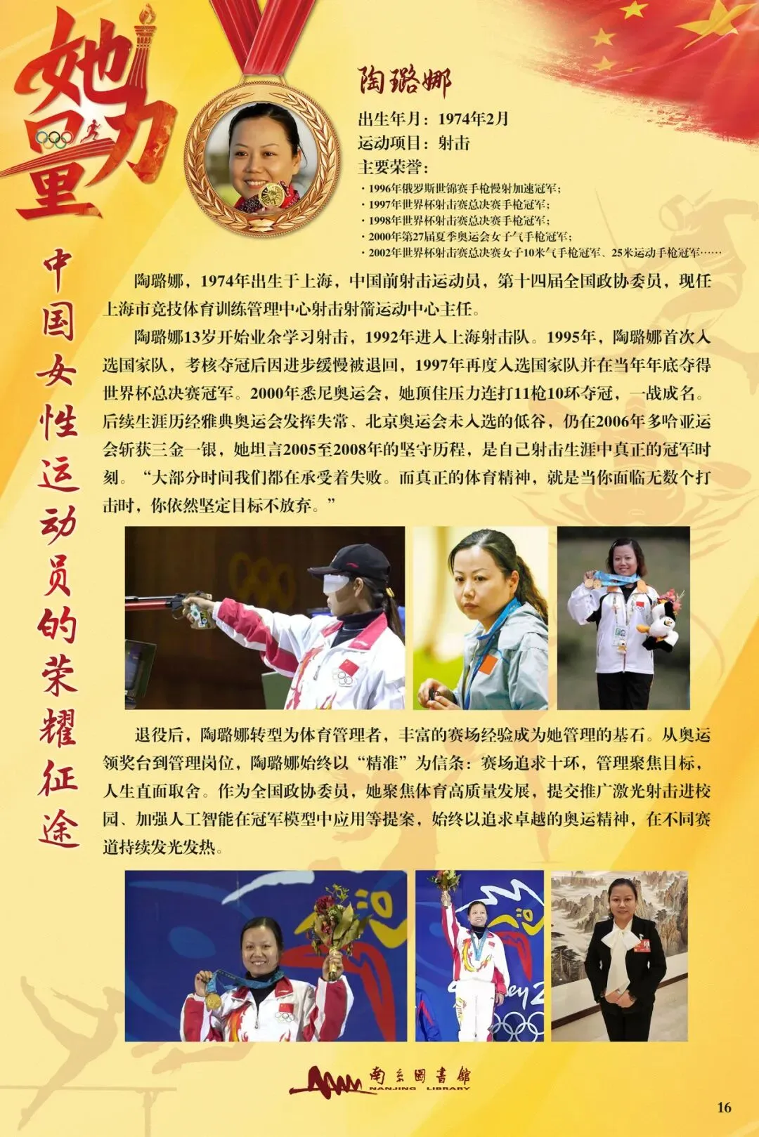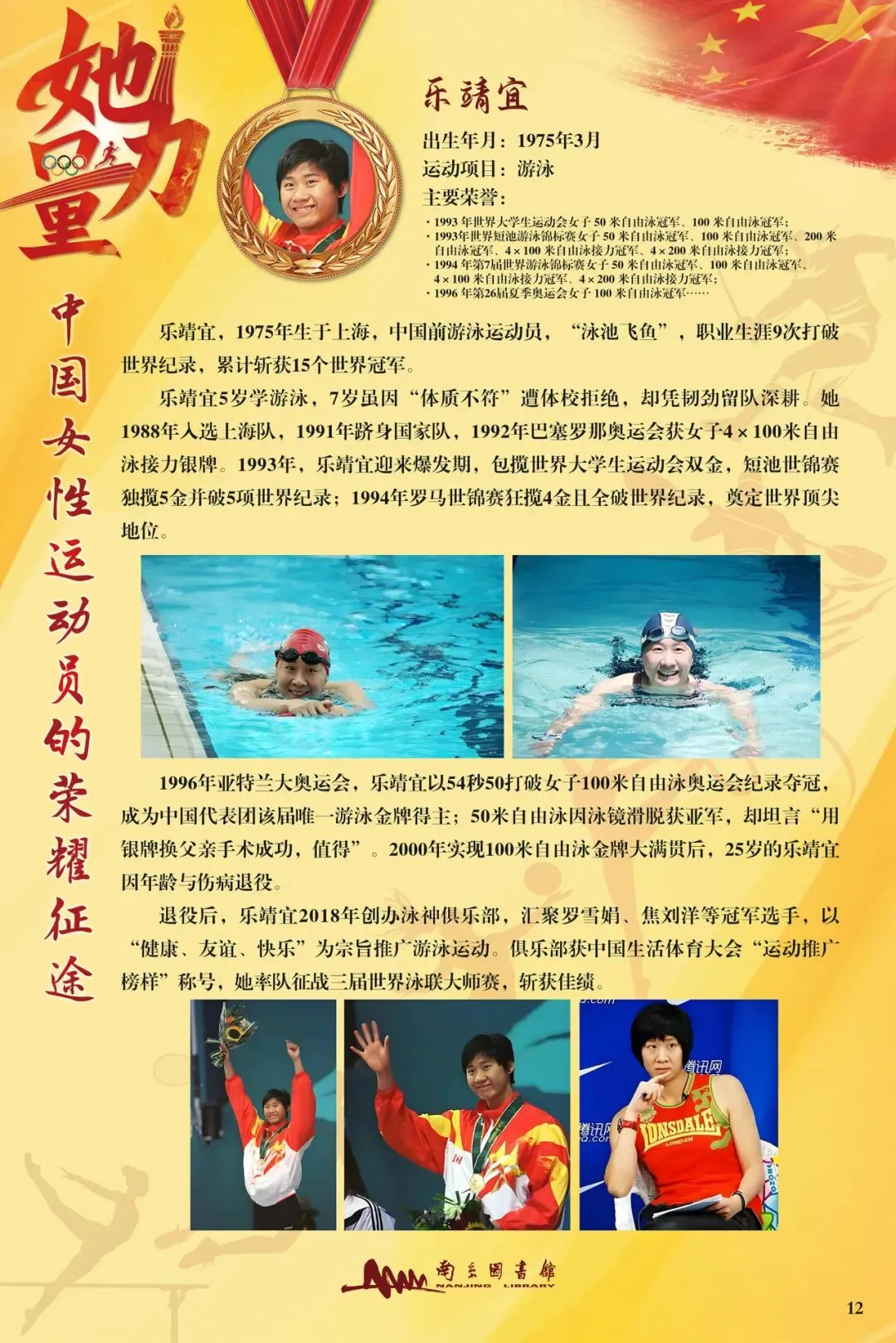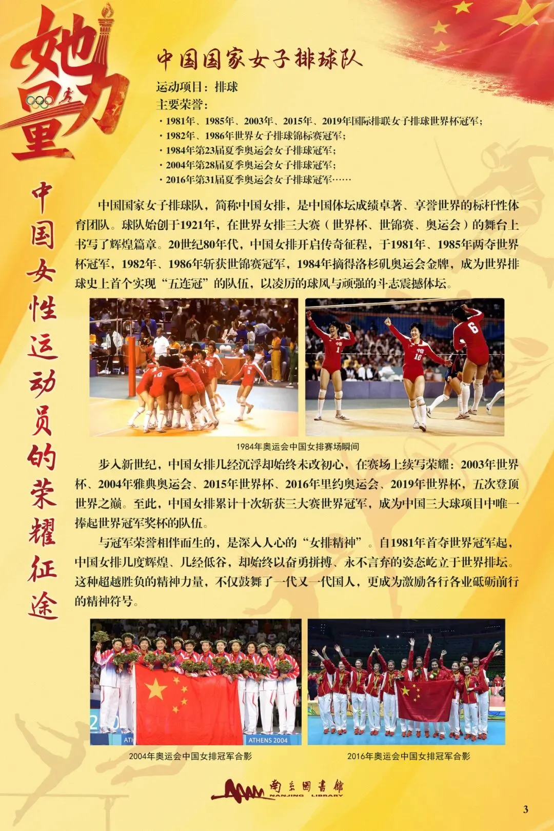 值此“三八”国际妇女节之际,由南京图书馆主办,徐州市鼓楼区图书馆联合主办的“她力量·中国女性运动员的荣耀征途”推出线上展览,旨在致敬那些在体育赛场上挥洒汗水,为国争光的巾帼英雄。