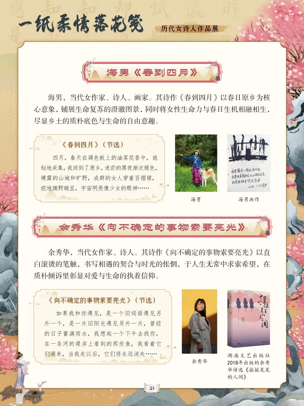中华优秀传统文化是中华民族的精神命脉,是涵养社会主义核心价值观的重要源泉。在中国文学的璀璨星河中,历代女诗人以独特的生命体验与文学才情,为这条精神命脉注入了温润而坚韧的力量。她们挣脱时代的束缚,以诗为言、以笔为心,将闺阁情思、家国之念与觉醒之志凝于笔墨,书写了中华文脉中不可替代的璀璨华章。