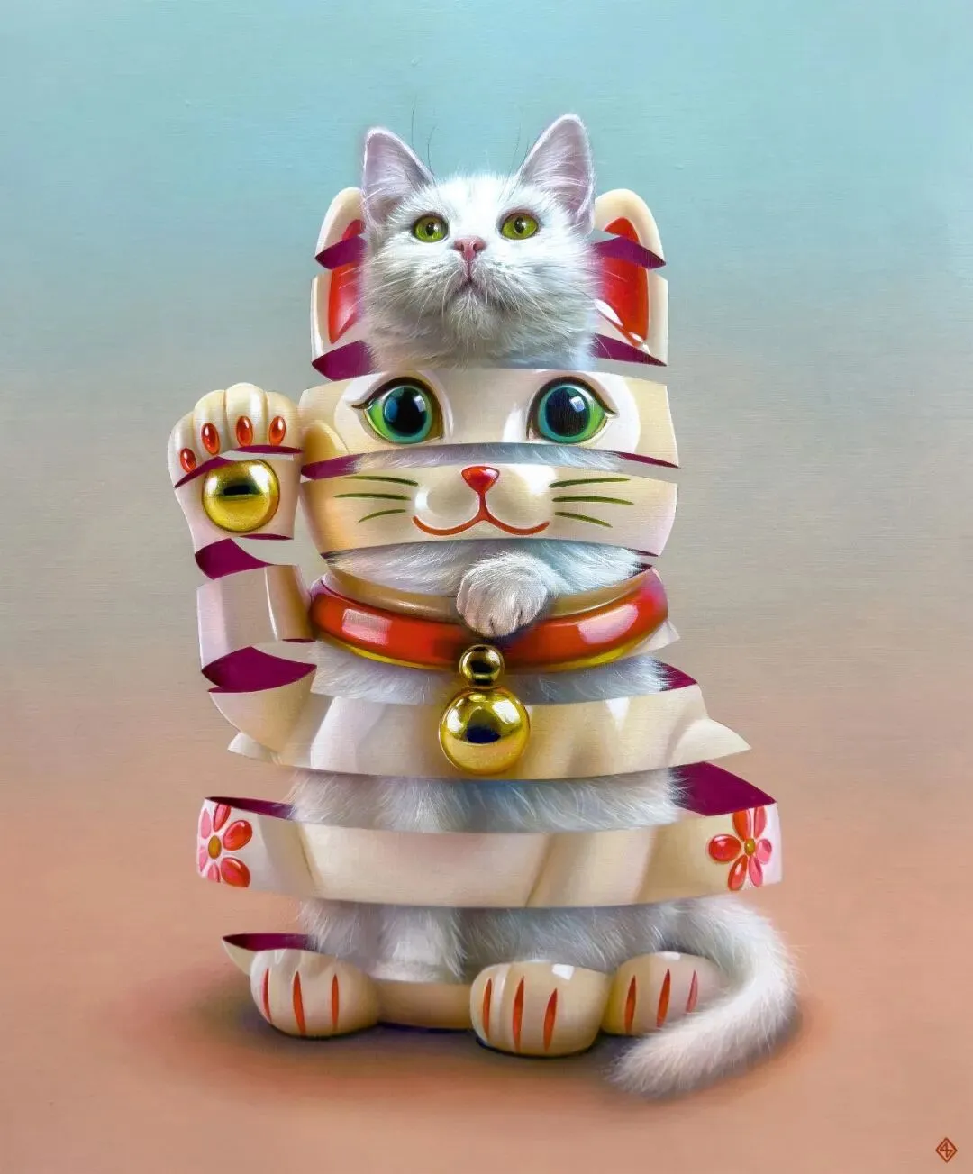 招财猫 Lucky Cat, 布⾯丙烯 Arylic on Canvas, 60 × 50 cm, 2025