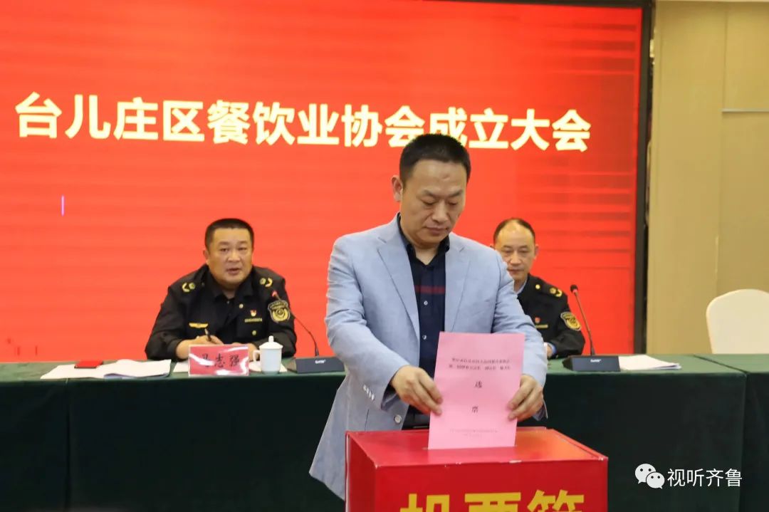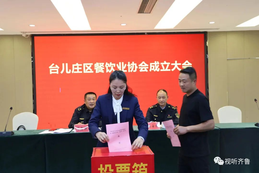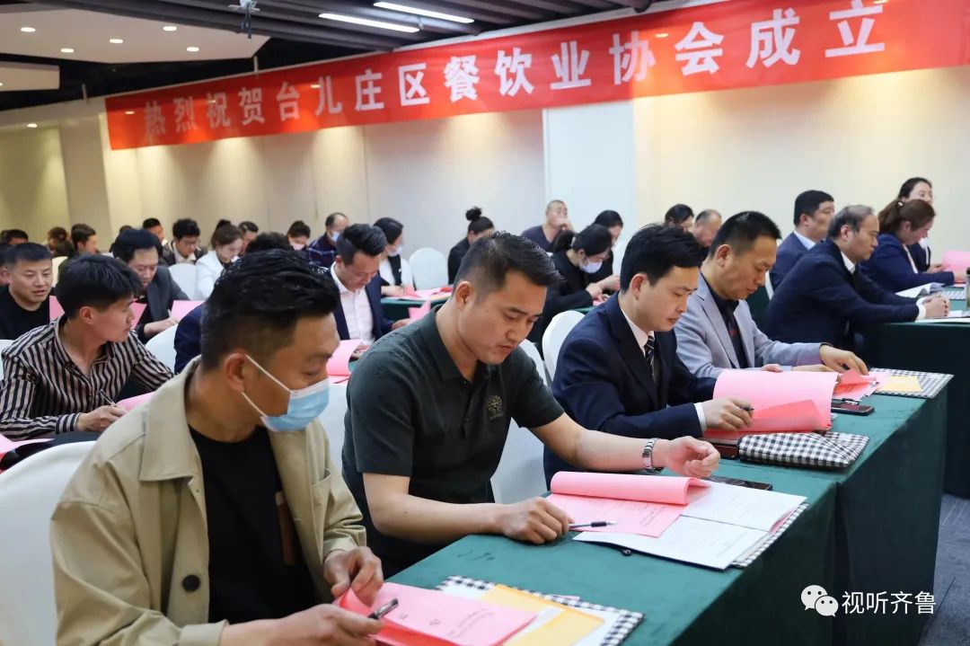 2023年4月27日下午,台儿庄区餐饮业协会在台儿庄大酒店宣告成立。大会举手表决通过了《枣庄市台儿庄区大运河餐饮行业协会第一届理事会选举办法(草案)》和《枣庄市台儿庄区大运河餐饮业协会章程(草案)》。