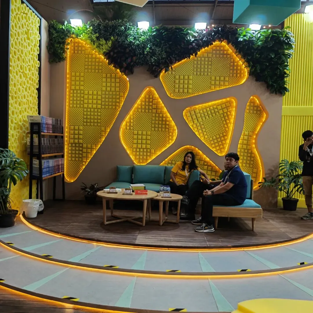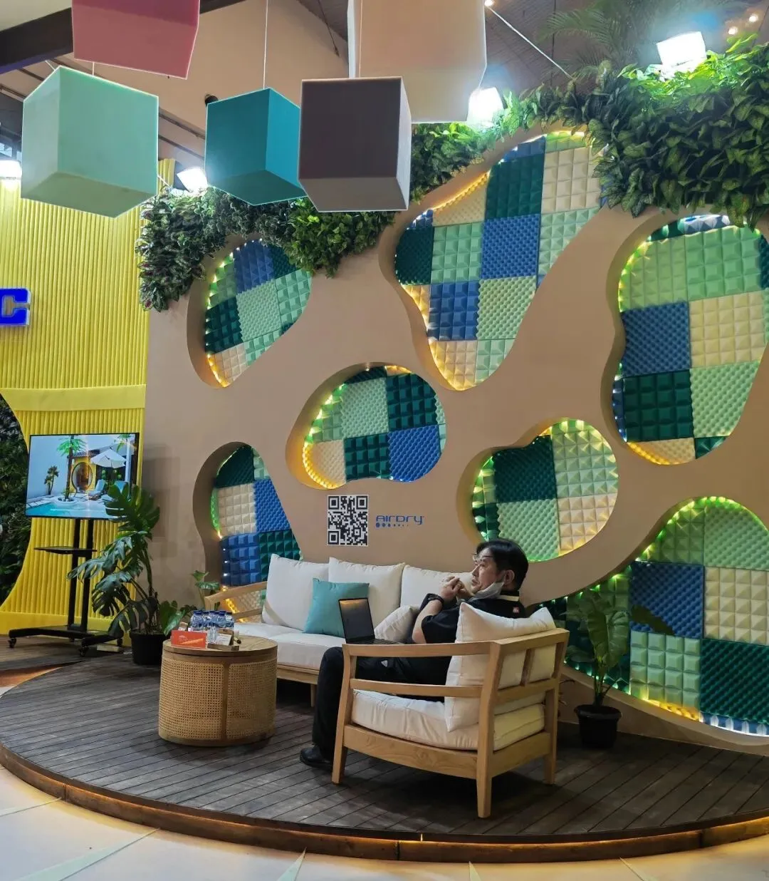 INOAC 凭借创意展位惊艳全场。以家具海绵打造艺术背景墙、景观与吧台,将材料变身为设计,实力诠释舒适与美学。