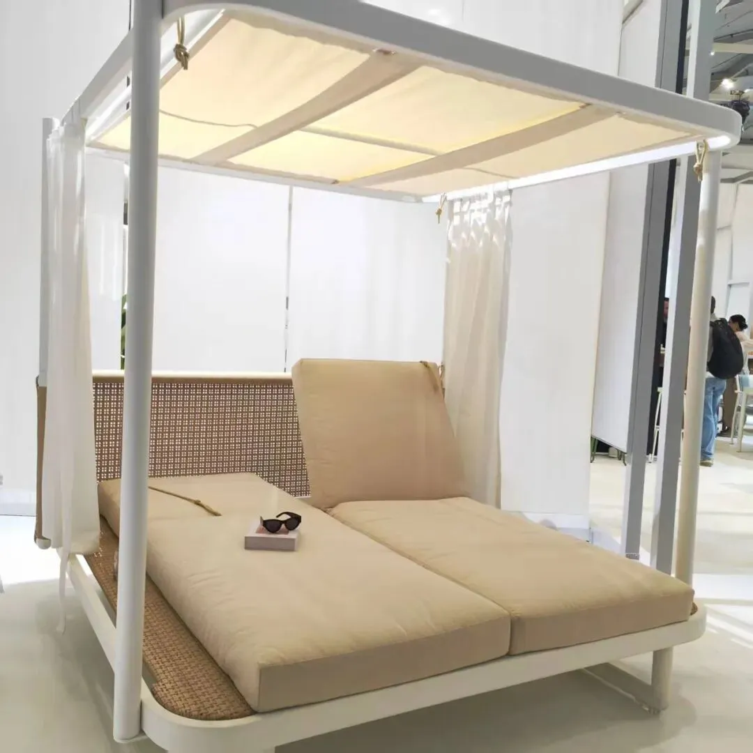 Skyline Design 带来了独特的编藤阳篷空间设计,其新款 Oram Daybed 帐篷躺床 灵感源自露营帐篷,以半开放的帐篷式结构,打造兼具庇护感与通透感的户外休憩角落,是品牌近年主推的户外休闲力作。