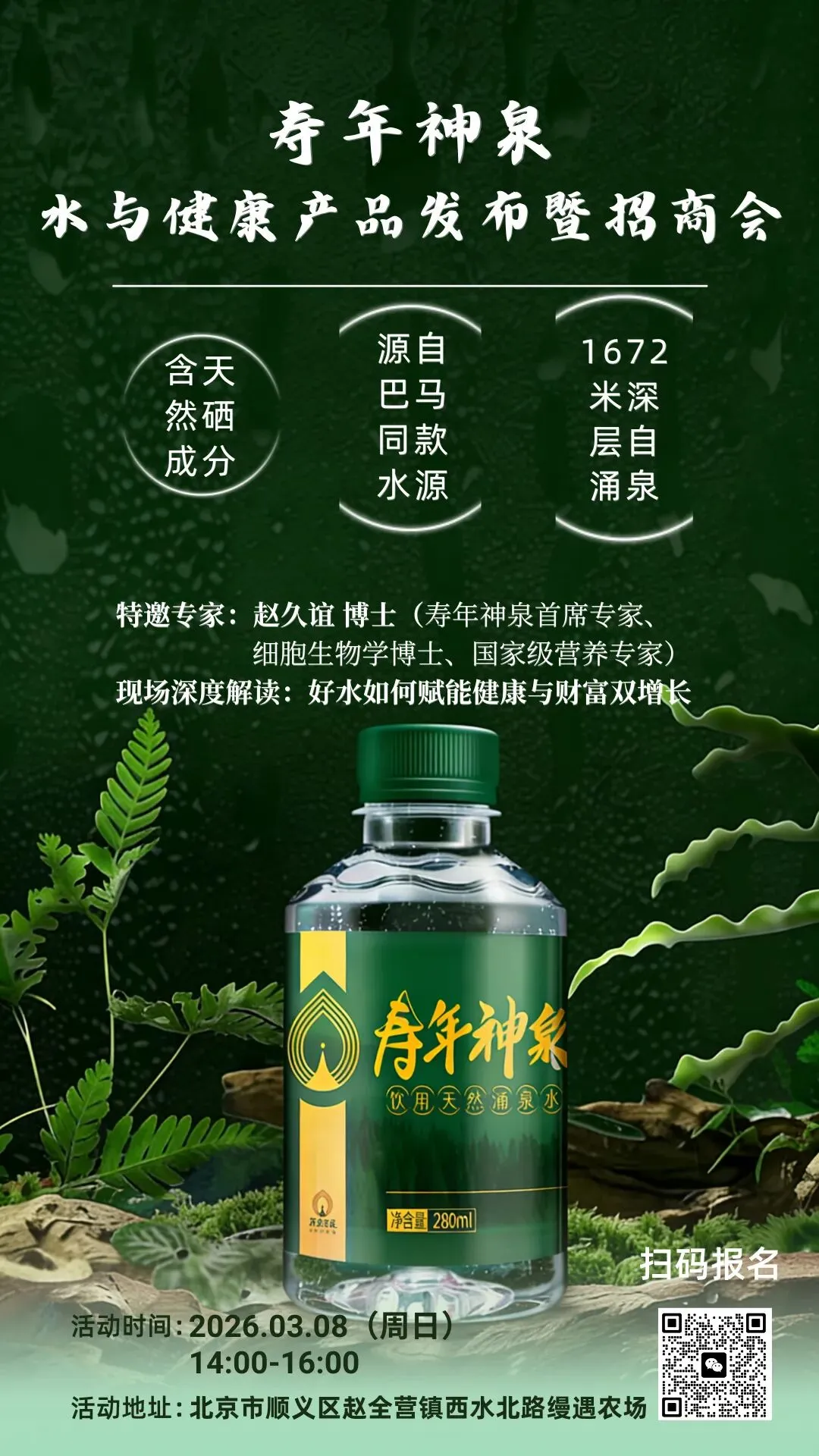 营业时间:每日10:00-18:00扫码参与下场活动:扫描下方二维码,即可预约参与寿年神泉下一场健康品鉴与招商分享会,抢先锁定合作机遇!