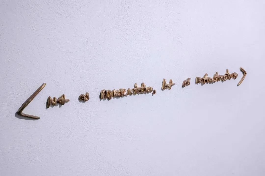 入口处展出的铜铸雕塑以艺术家手写文字为形式,观众从另一种角度理解雕塑:它不仅是图像或符号的再现,也可以被视为一种介入现实空间与社会关系的装置。在 Moscardini 的创作中,雕塑往往被理解为一种能够激活空间、重新连接人与环境关系的媒介。