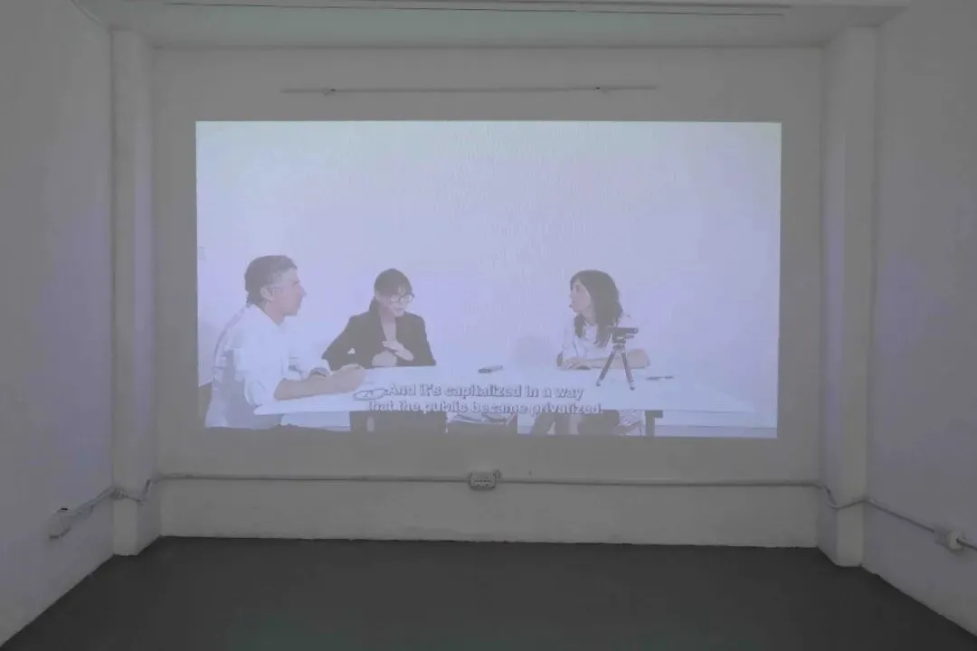 展览空间中的影像作品 And Remember that Holes Can Move 则记录了艺术家于2023年在博尔扎诺 Ar/Ge Kunst 举办的一次讨论活动。来自不同国家的法律学者与研究者受邀参与,围绕一个问题展开交流:是否可以通过国际法框架,将某些雕塑视为不隶属于任何国家主权、不可被占有的公共资源。
