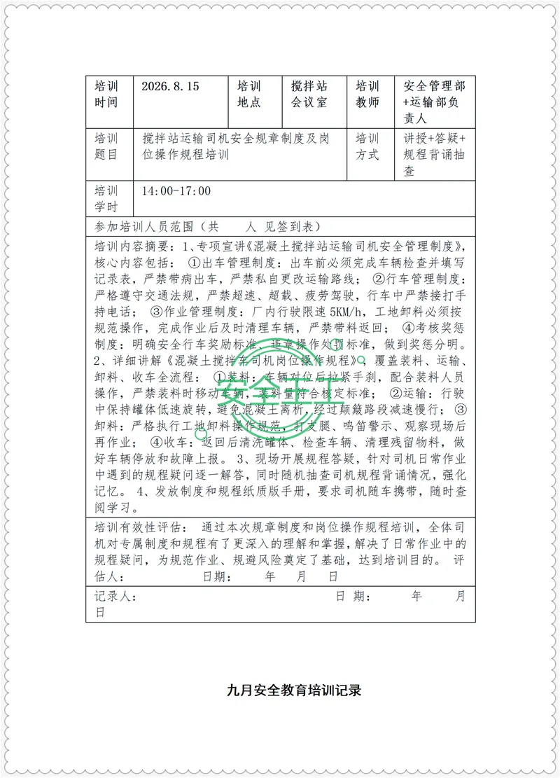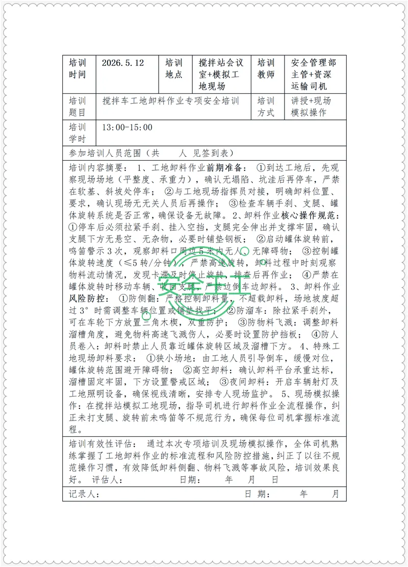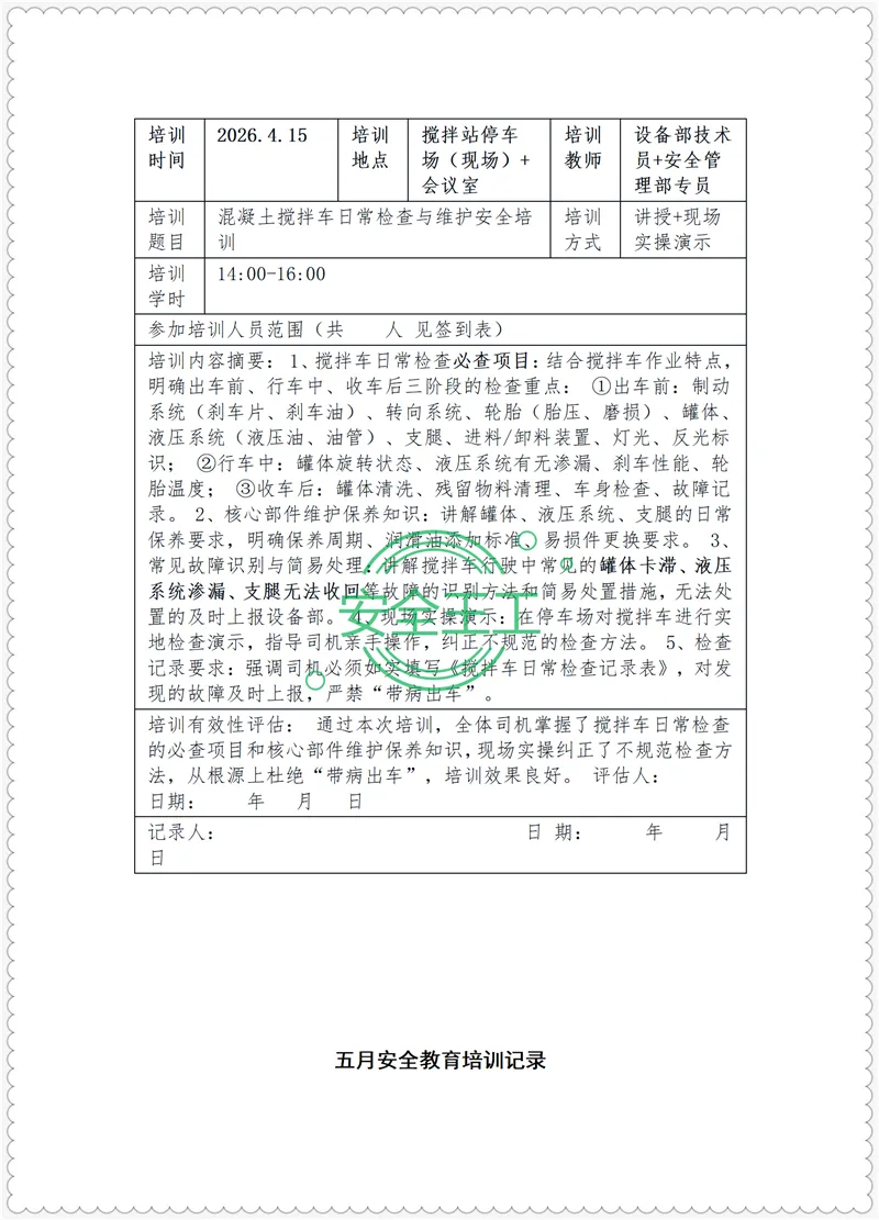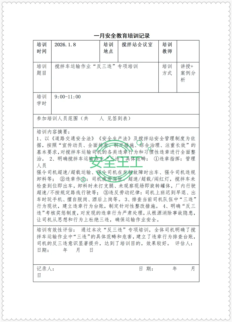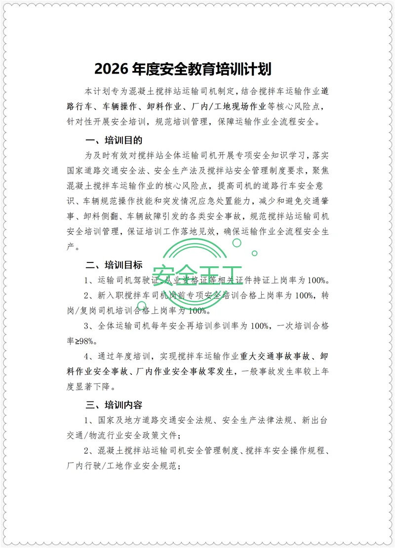 工贸行业安全管理和企业现场常见隐患排查解读+混凝土搅拌站运输司机2026年度安全教育培训计划培训记录