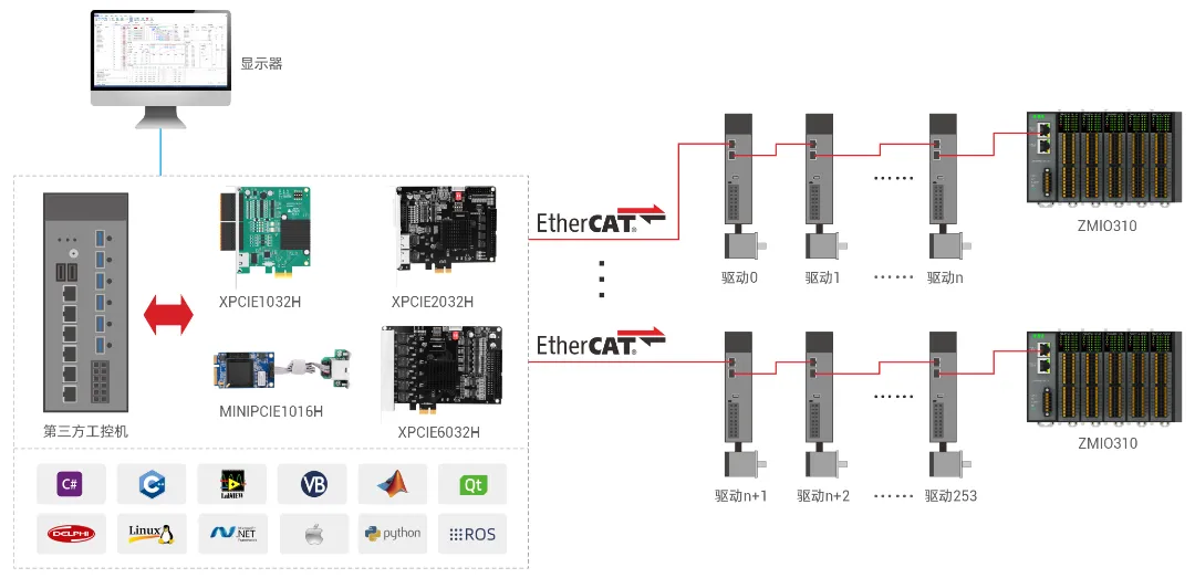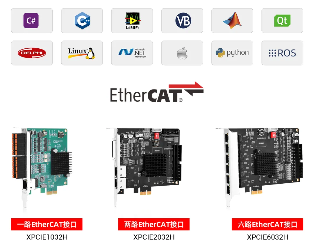 采用标准EtherCAT接口,32轴冗余同步周期125us。