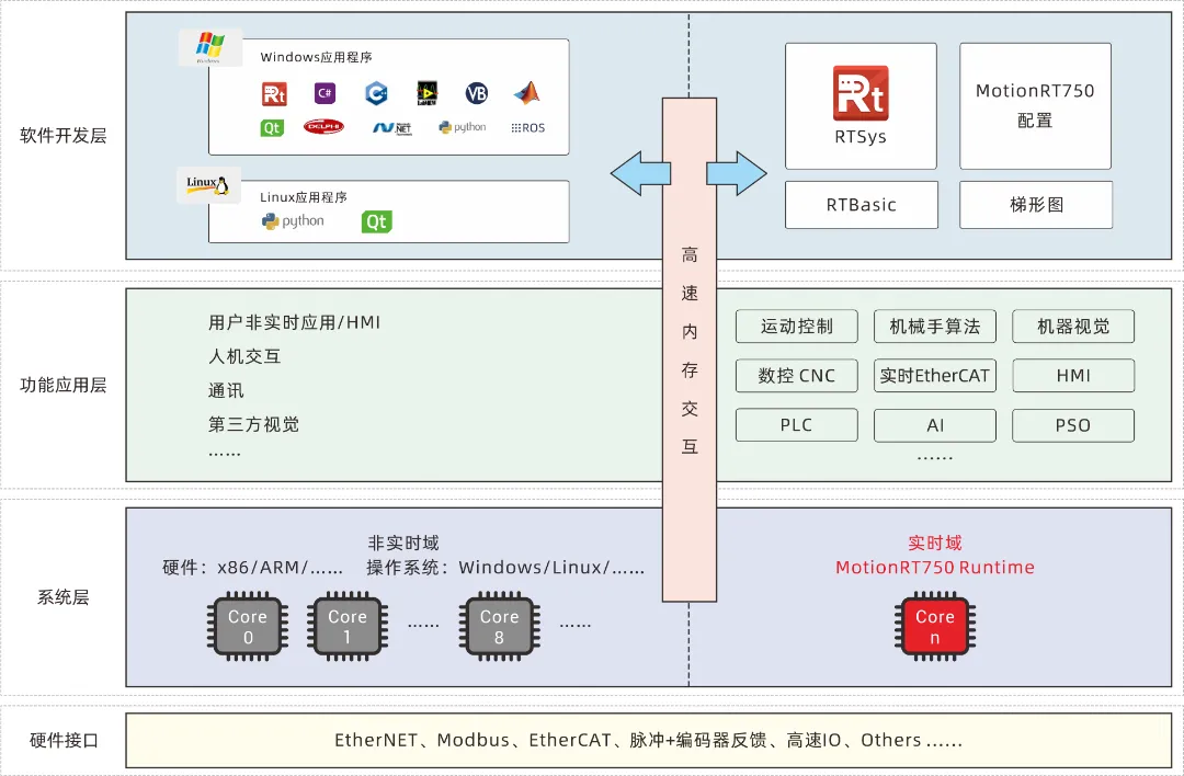 内置强实时运动控制内核MotionRT750,支持第三方视觉软件。