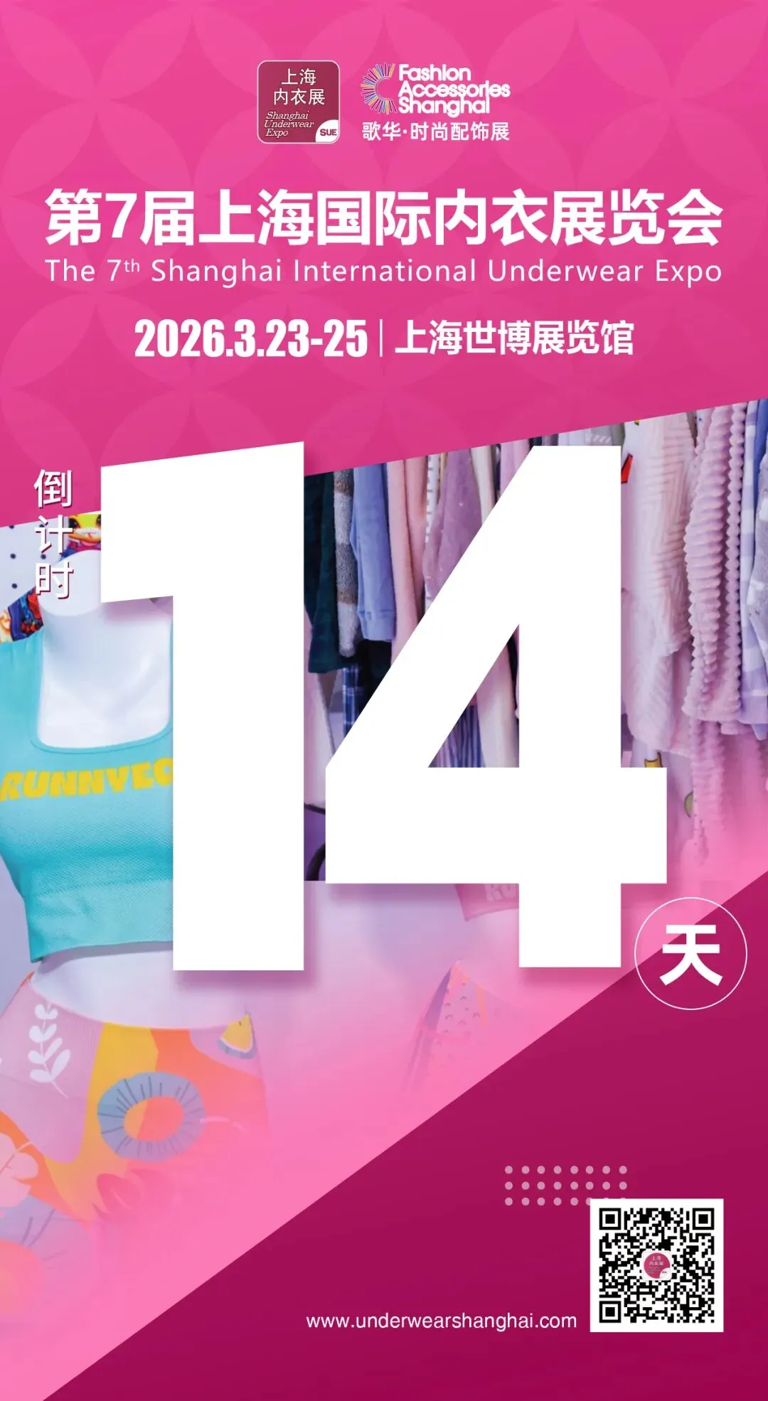 由上海市服饰学会、上海市服饰学会内衣泳装和家居服专业委员会和上海歌华展览服务有限公司联合主办的第7届上海内衣展SUE将于2026年3月23-25 日在上海世博展览馆盛大召开!