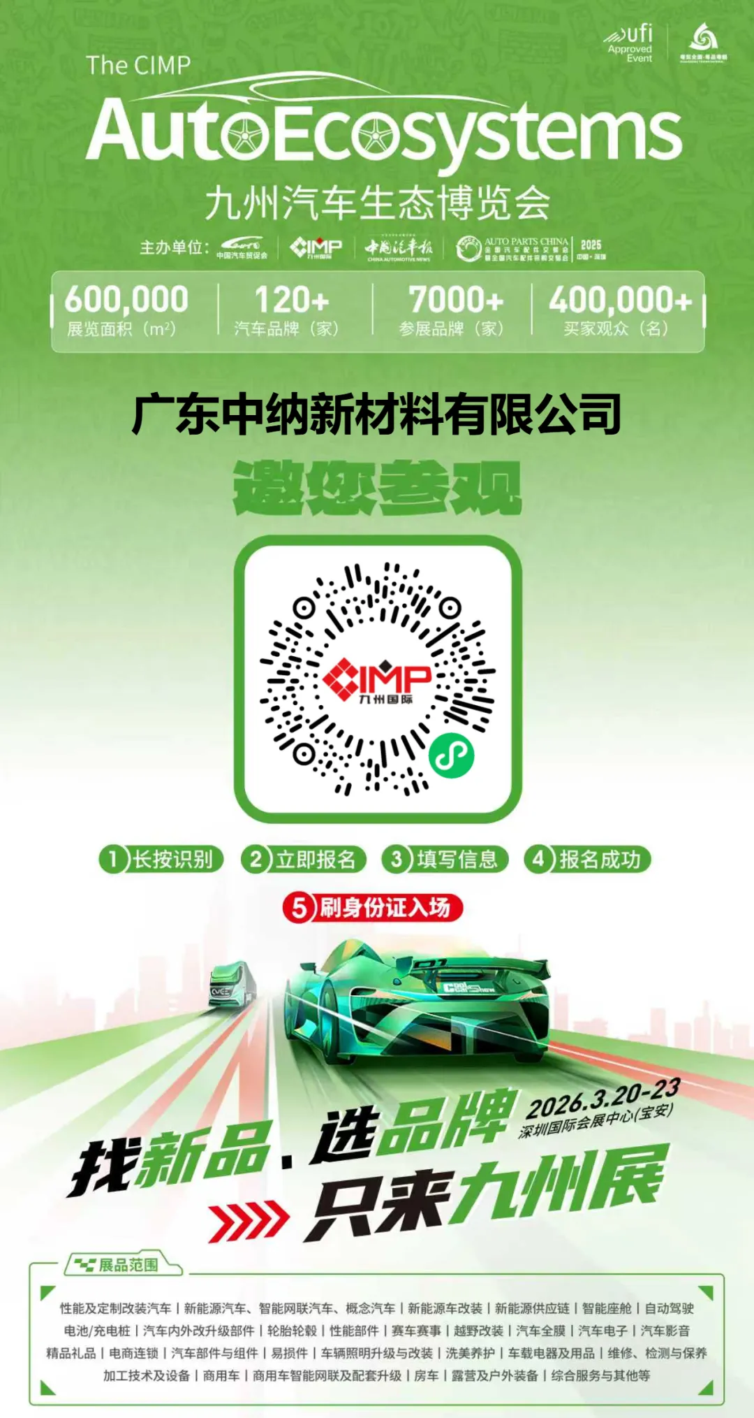 此次参展,中纳新材料将全方位展示纳米新材料在汽车车膜领域的技术突破与产品竞争力,搭建与行业伙伴、终端客户的沟通桥梁,寻求深度合作契机,共拓纳米新材料应用新蓝海。期待您的到来!诚邀您莅临深圳国际会展中心(宝安)汽车膜产业链专区82009-E位口进行交流。