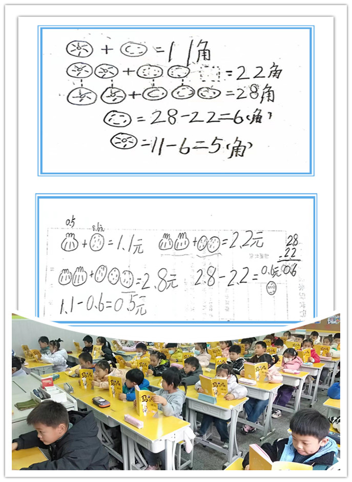 数学阅读和数学游戏是我校数学学习的特色。数学绘本《货币简史》讲述了货币的前世今生,《小狐狸卖葡萄》教给孩子们买卖商品的技巧,《三只杯》中的储蓄杯、消费杯、爱心杯让孩子学会规划,终生受益;数学书籍《马小跳玩数学1年级》中“为什么人民币没有3元、4元、6元等面值”、“有趣的人民币组合”、“馅饼和包子的价格”等精彩的小故事唤起孩子们的思考和探究。
