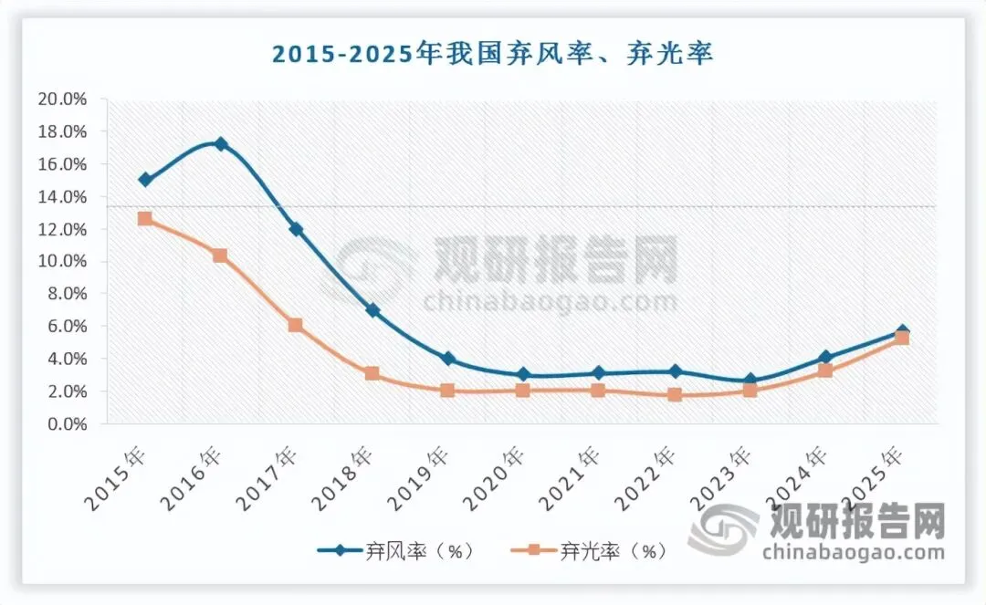 我国新能源消纳治理具备清晰的政策演进脉络与阶段性特征。2018 年,国家发改委与国家能源局印发《清洁能源消纳行动计划(2018-2020 年)》,首次明确将弃电率限制在 5% 以内,政策落地成效显著,新能源利用效率大幅提升。但受新能源装机高速增长、区域供需错配等因素影响,2024 年以来弃电率有所回升,2025 年全国总体弃风率、弃光率分别达到 5.7%、5.2%,消纳压力重新显现。