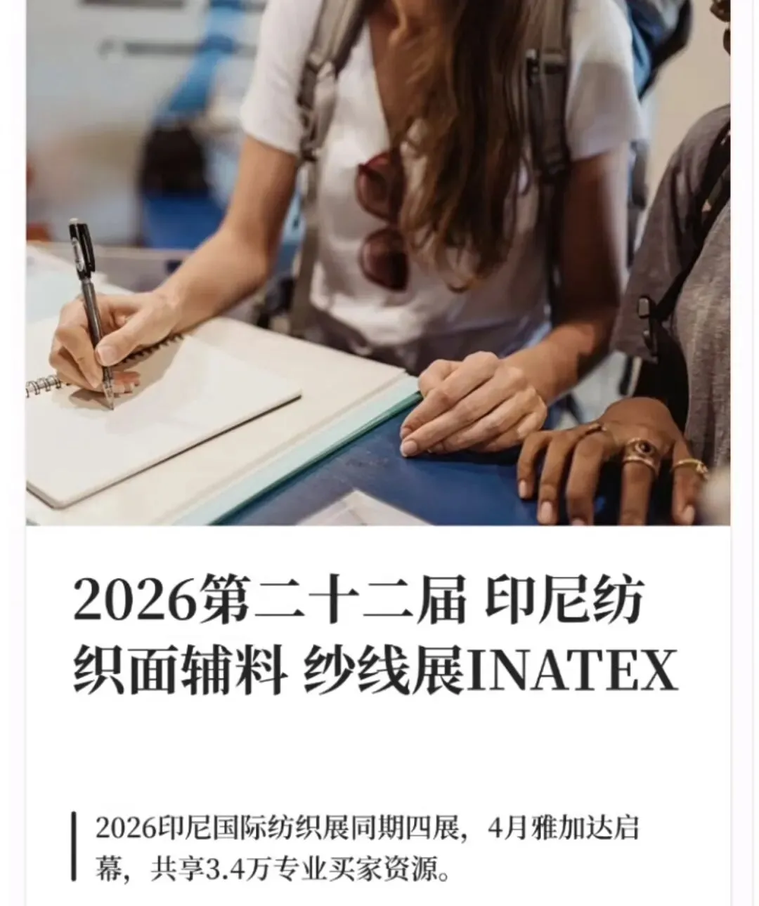 - 2026年4月,让我们相聚印尼雅加达,共赴第22届印尼国际纺织面辅料展览会INATEX,携手共创纺织行业的美好未来!期待您的莅临