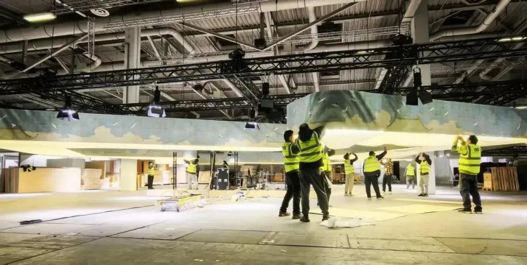 施工环节,是这场攻坚战中最艰巨的硬仗。柏林当地的施工标准之严、工期之短、人力调配之难,远超预期:展馆仅开放6天施工窗口期,搭建材料需现场检测环保指标,违规将直接勒令停工。更具挑战的是,核心施工期恰逢中国春节,国内技术骨干远赴德国,与印筑中国、德国、英国、西班牙公司团队共同克服苦难形成合力, 完成数万件物料的组装与调试。