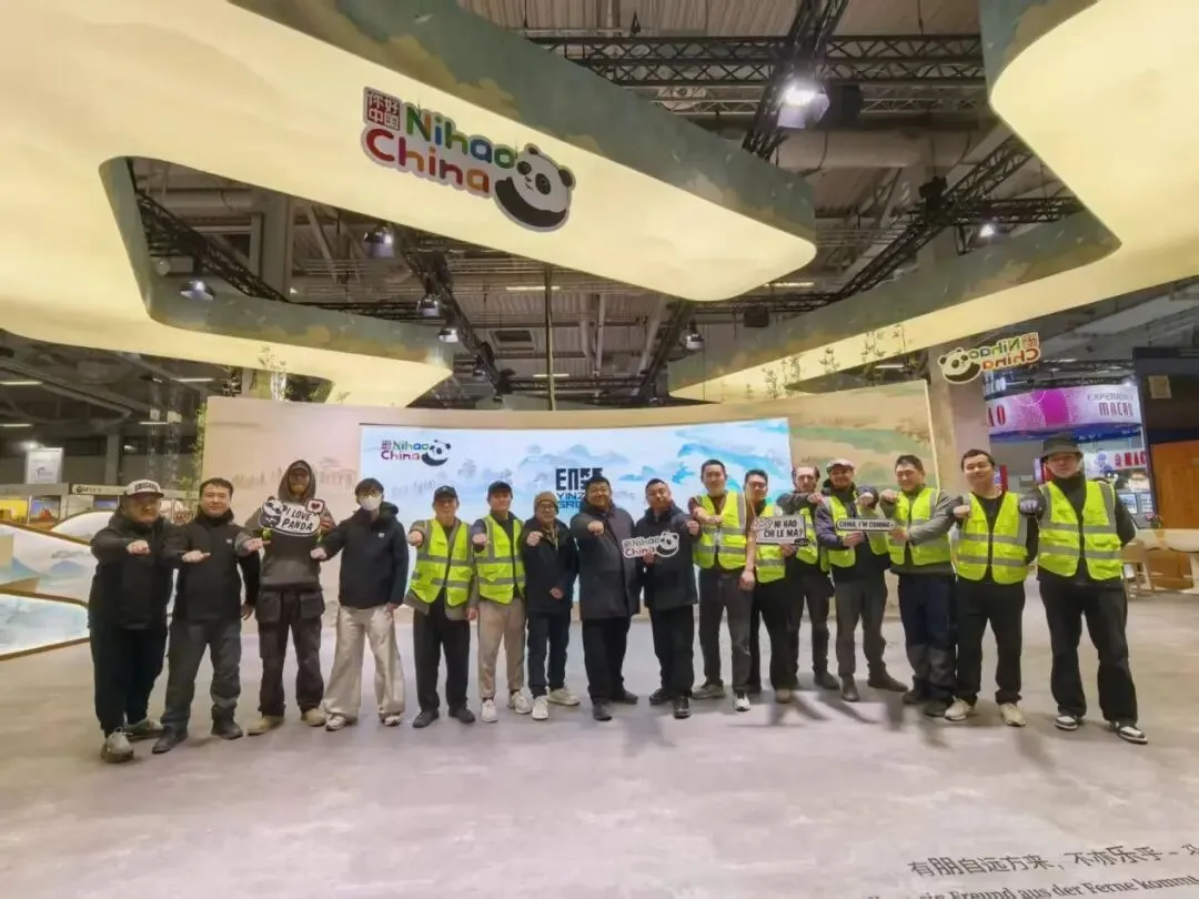 春节期间,公司全员动员,后方团队放弃休假,为前线提供技术支持、物料补给与后勤保障;前线团队坚守岗位,在异国他乡度过了一个意义非凡的春节。设计师与施工团队实时联动,解决现场设计优化问题;物流清关团队与施工团队紧密配合,确保物料“随到随用、精准到位”;中国驻法兰克福旅游办事处与参展省区市的需求,都能在第一时间得到响应与落实。这种跨部门、跨地域的高效协同,凝聚起了攻坚克难的强大合力。