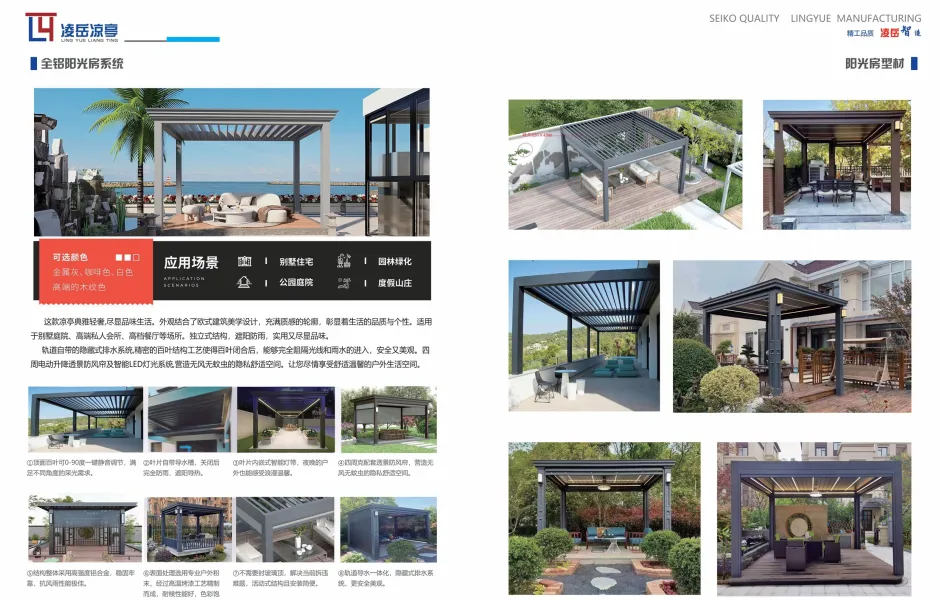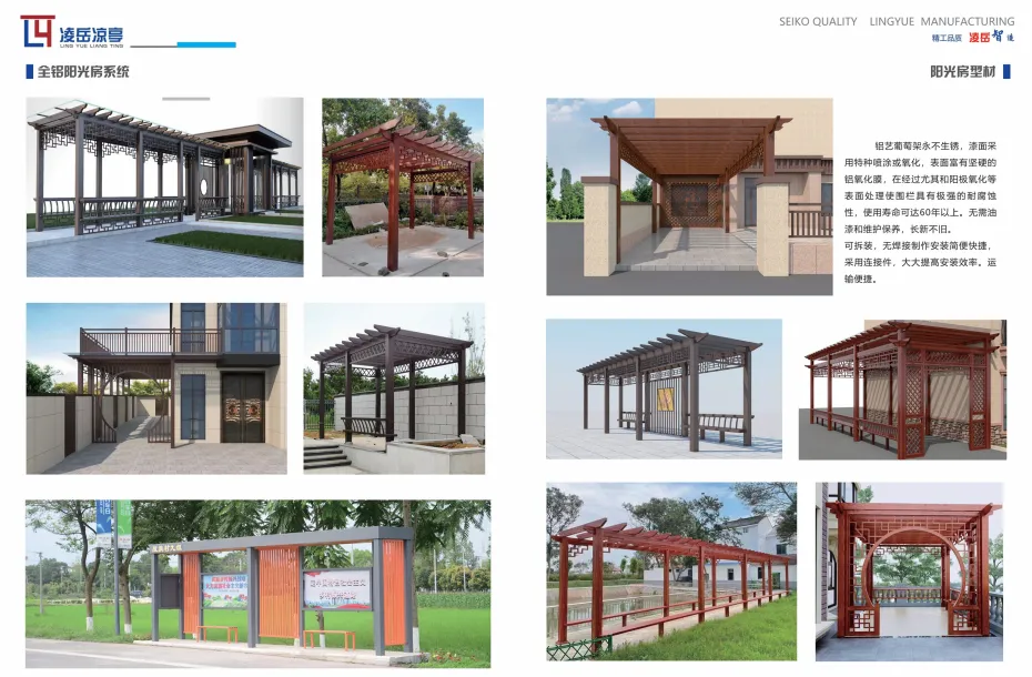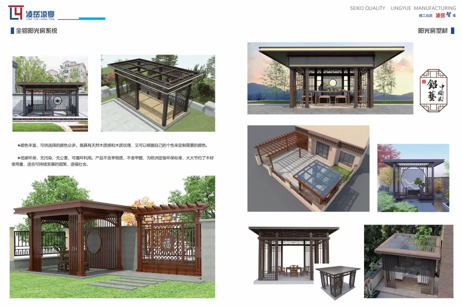 凌岳凉亭位于中国铝业之都,山东省临朐县,是一家专业从事全铝阳光房、凉亭、钢制凉亭、廊架、全铝雨棚、天窗成品/半成品加工及型材销售的企业。自成立以来,以卓越的品质和优质的服务获得了合作伙伴和国内外客户的一致好评。