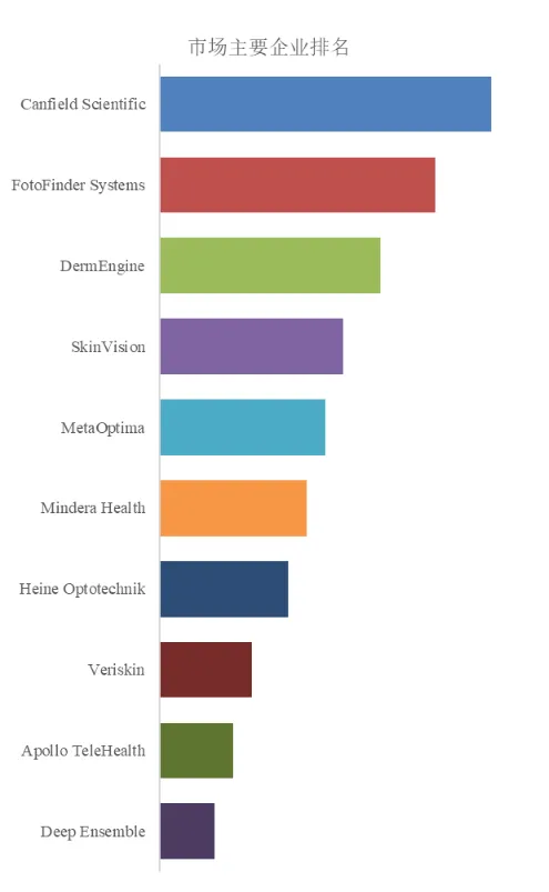 国际市场占有率和排名来看,主要厂商有Canfield Scientific、FotoFinder Systems、DermEngine、SkinVision、MetaOptima等