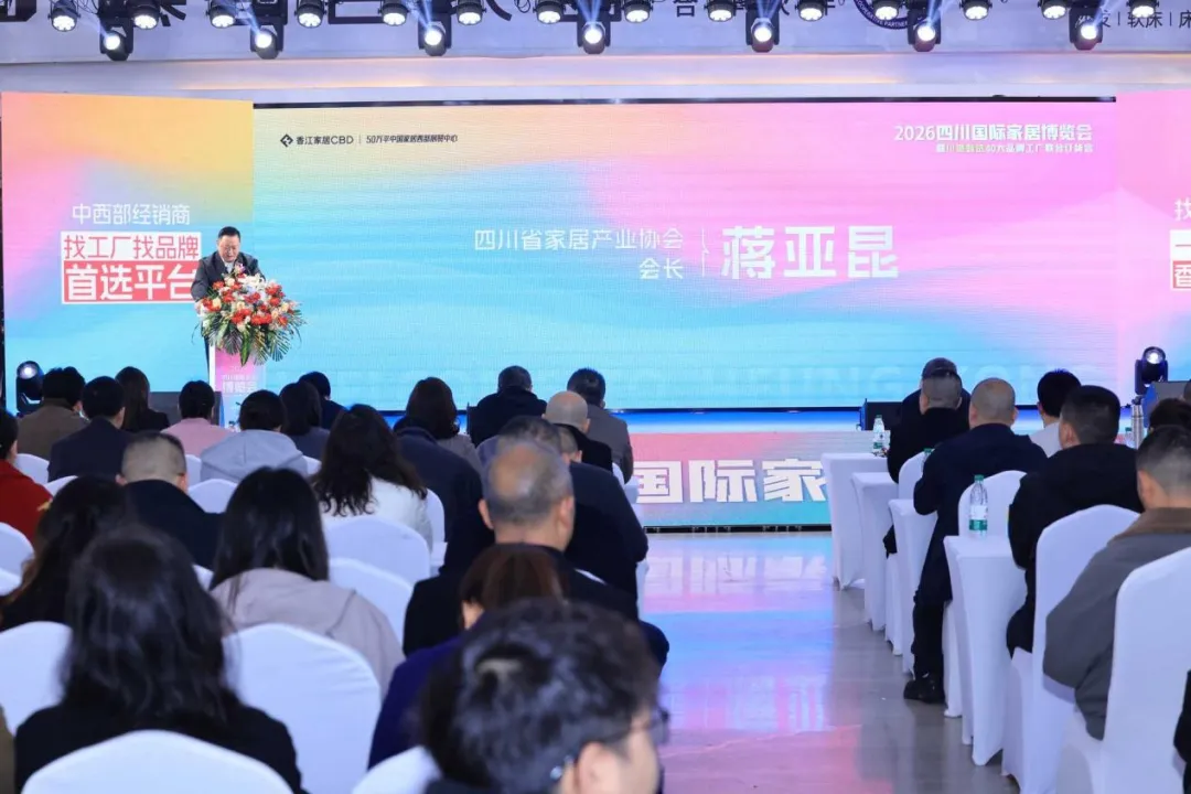 最后,在全场嘉宾的共同见证下,与会领导、行业协会负责人及企业代表共同登台,为2026四川国际家居博览会暨川派甄选40大品牌工厂联合订货会开幕启动。本次博览会主打“川派甄选”概念,汇聚千余家川派工厂的年度新品,以实景展贸模式向国内外经销商及成都市民集中展示,充分彰显了川派家居的匠心品质与集群韧性。当前,家居行业正处于结构性变革的关键时期,面对挑战,唯有抱团发展、开放协作,方能穿越周期,共创四川家居产业更加美好的明天!