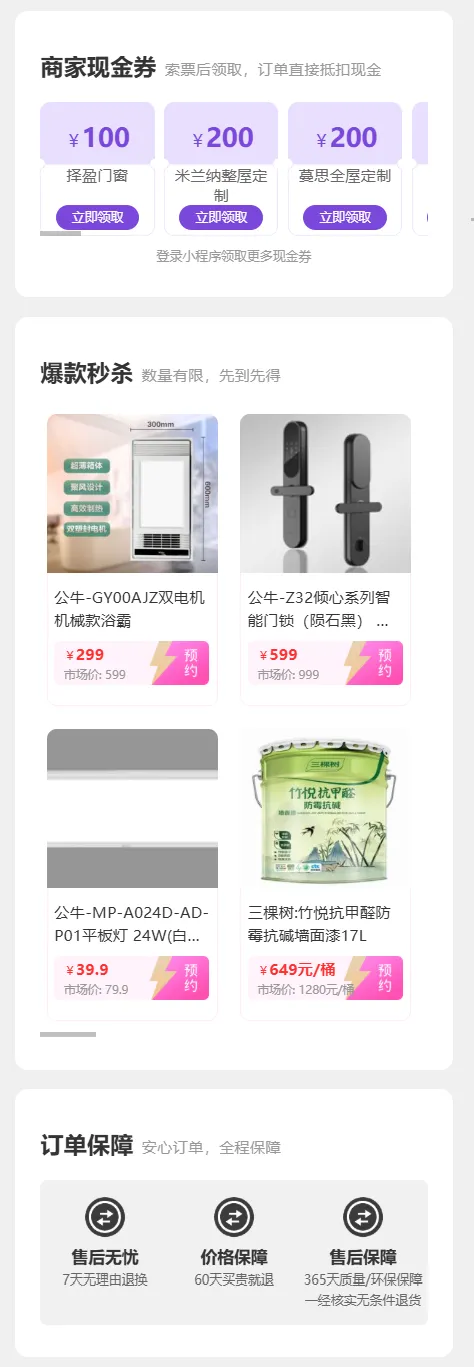 建材:地板、瓷砖、卫浴、门窗、涂料等装修主材,品质有保障,款式多样;