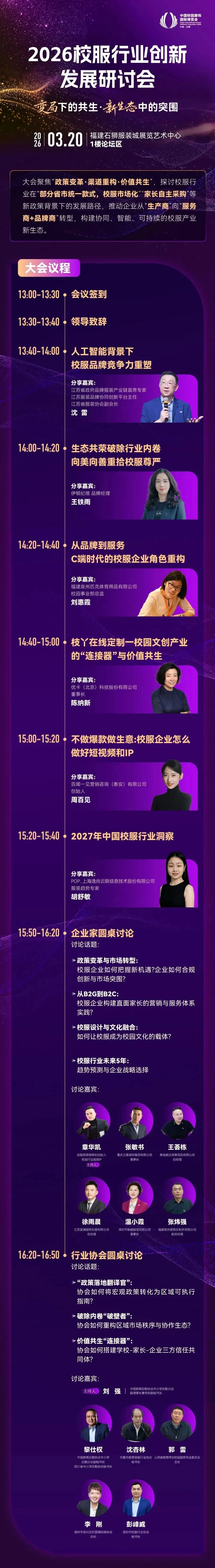 2026年3月20日至22日,2026中国(石狮)校园服饰国际博览会将在石狮服装城展览艺术中心举行。作为国内校园服饰全产业链的顶级专业展会,本届展会扎根全球校服制造核心的福建,依托万亿产业生态圈,规模更大、规格更高,链接多方资源驱动产业升级,打造全国性展会与一体化平台,推动校服产业多元升级。