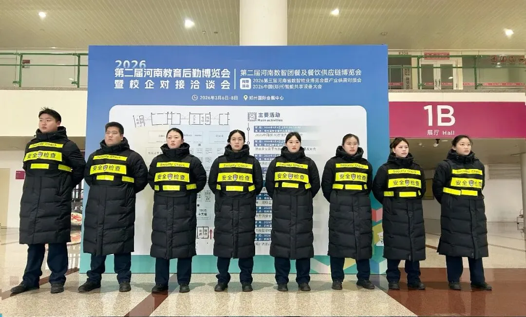 2026年3月6日-8日,第二届河南教育后勤博览会暨校企对接洽谈会、第二届河南数智团餐及餐饮供应链博览会在郑州国际会展中心盛大举办并完美收官。作为本次展会核心安检保障力量,皇廷卫士(河南)保安服务有限公司全程坚守,以专业筑牢安全防线,以温情传递服务温度,护航展会顺利落幕。