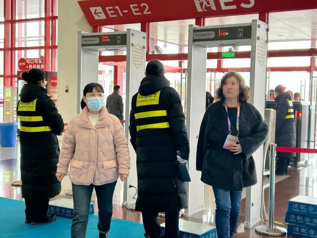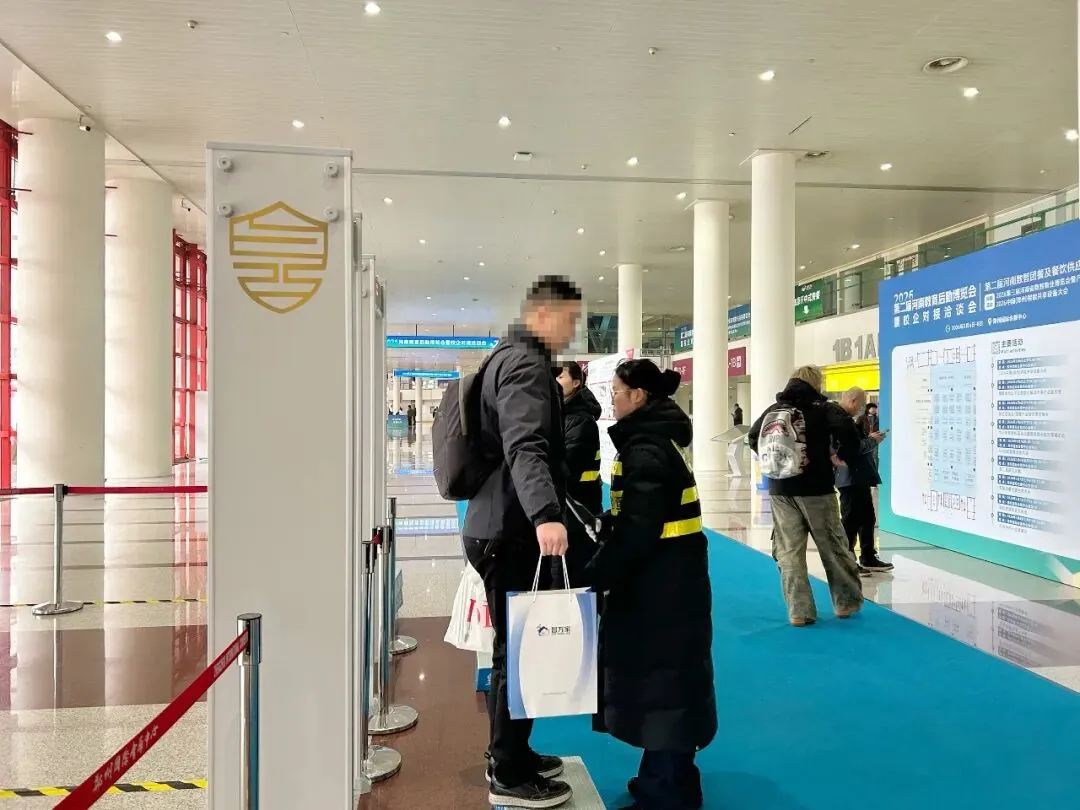 贴心服务,传递守护温情。展会期间,皇廷卫士执勤人员始终坚守岗位、履职尽责,严格按照安检规范开展工作,细致排查每一件入场物品、每一位参会人员,做到“零差错、零遗漏”。面对参展商、参会者的咨询,他们耐心解答、主动引导;遇到携带重物的参展商,主动上前协助搬运;用真诚服务化解隔阂,让严谨安检多了一份温度。