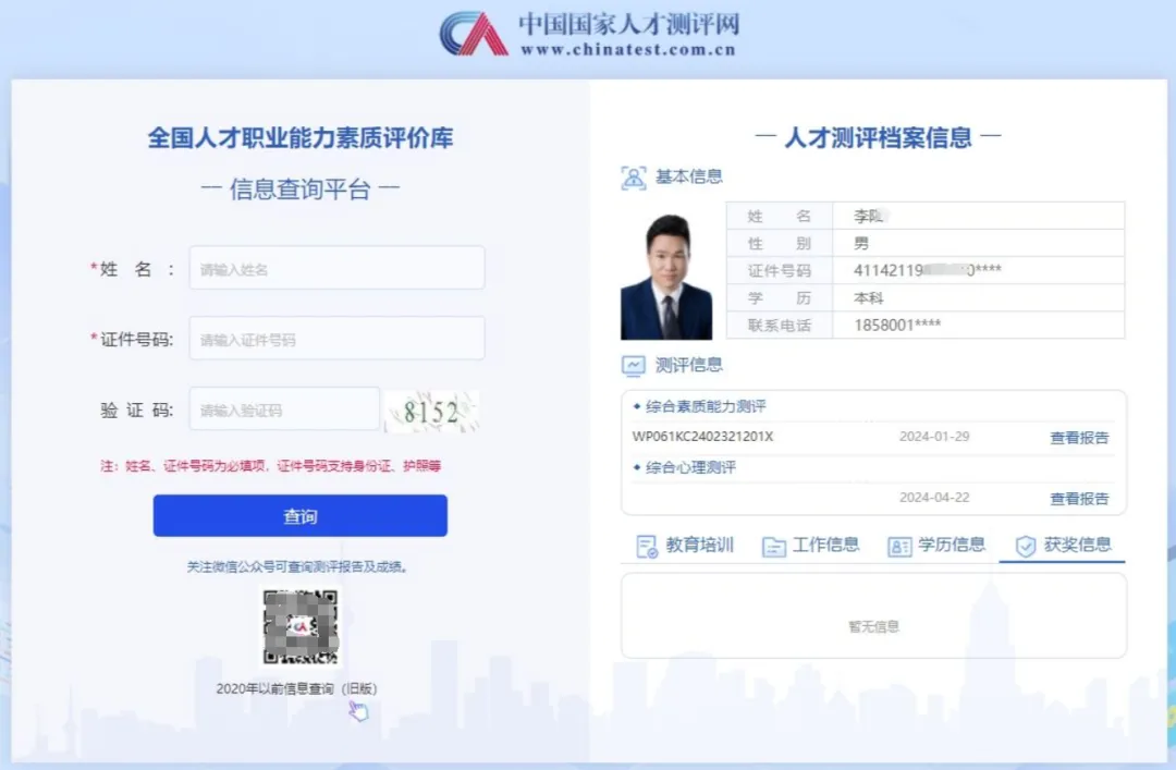 中国国家人才测评网查询截图: