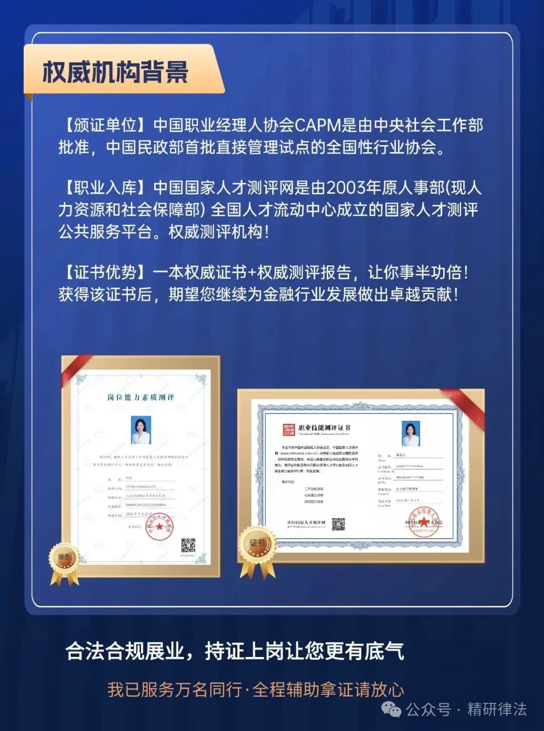 中国职业经理人协会授权重庆邦银有限公司结合自身优势,在全国开展“企业融资规划师、公司金融顾问、金融分析师、金融风险管理师、债务规划师”的项目测评,全新助力金融从业者行业更职业、更合规。