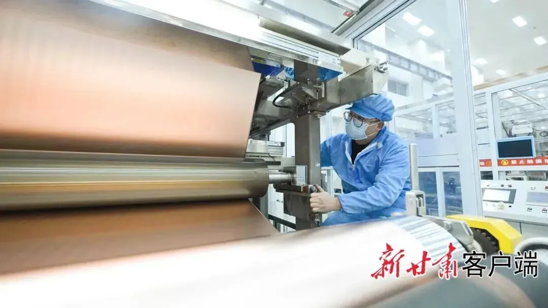 在甘肃德福新材料有限公司生产车间内,一张张锂电铜箔被分离成不同宽度的成品。别看它薄如蝉翼,却是制造新能源汽车动力电池重要的原材料。铜箔越薄,电池的质量就越轻,能量密度就越大,能容纳的电量越多。