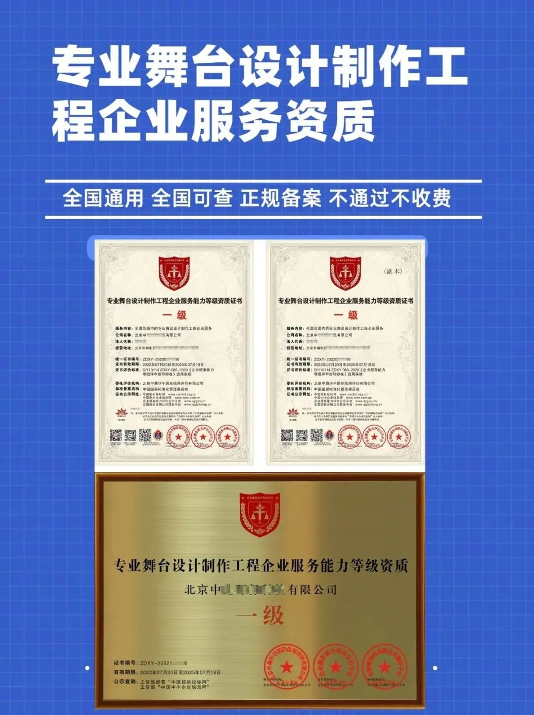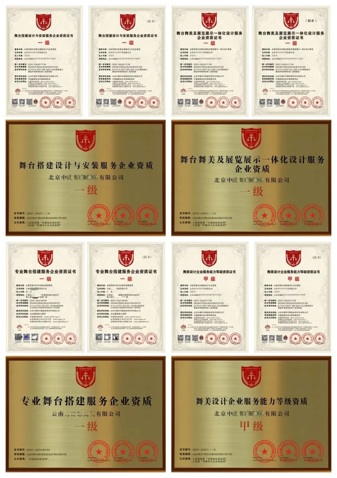 专业舞台设计制作工程企业服务能力等级资质证书,