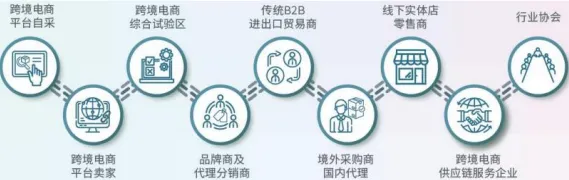 跨境电商平台自采、跨境电商平台卖家、跨境电商综合试验区、品牌商及代理分销商、 传统B2B 进出口贸易商、境外采购商国内代理、线下实体店零售商、跨境电商供应链服务企业、行业协会等。