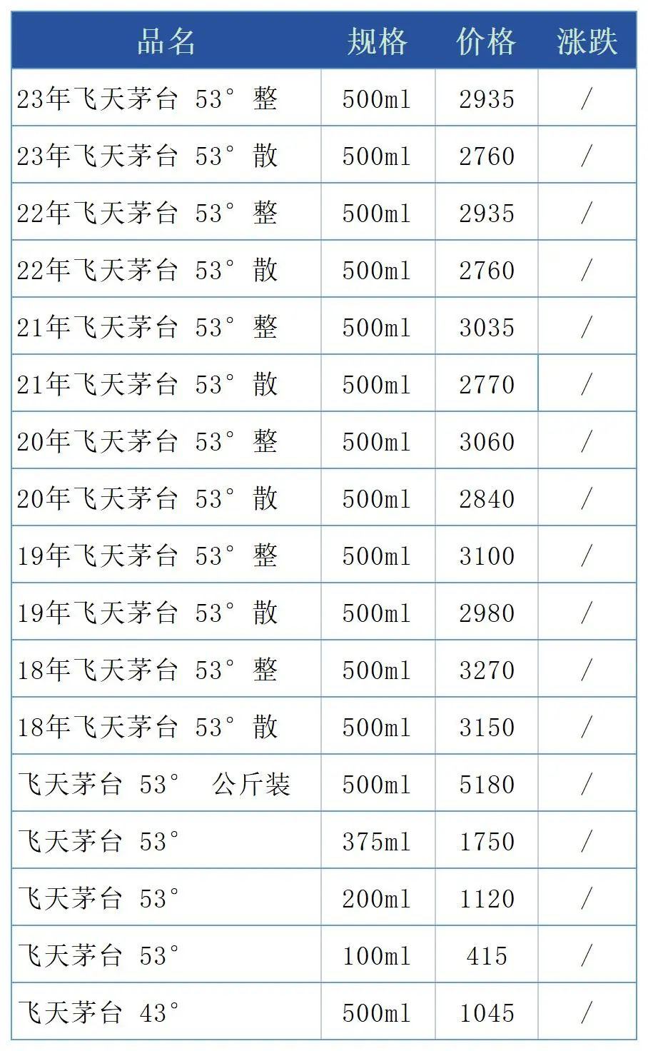 雨水茅台暴涨,每日名酒报价2023年4月29日