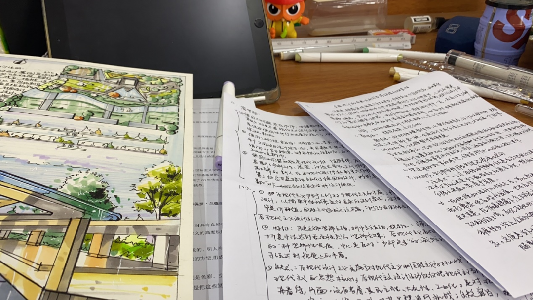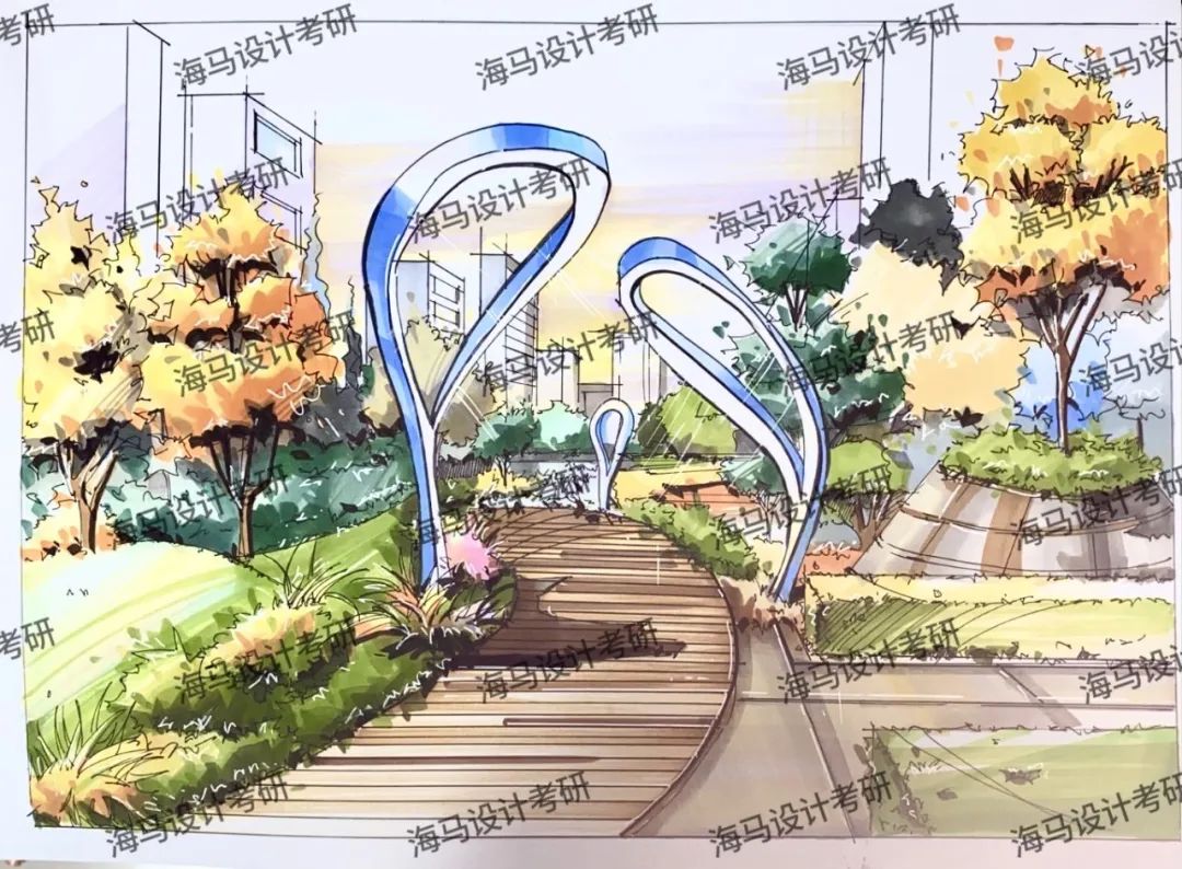 所谓创意设计,就是快题加理论,回答五个简答题和一个论述题,剩下的快题是“大头”。我当时遇到的考题使我大吃一惊,因为都是相对冷门的名词,也怪我自己复习的不到位,没有把所有的重点都掌握住。但是我的论述题在学长的指挥下已经准备充分了,所以扣分不多。手绘方面:我有一些室内快题的基础,学习室外快题也相对容易了一些,跟着海马的手绘课程,最后制定考试模版,完全可以达到考场水平。