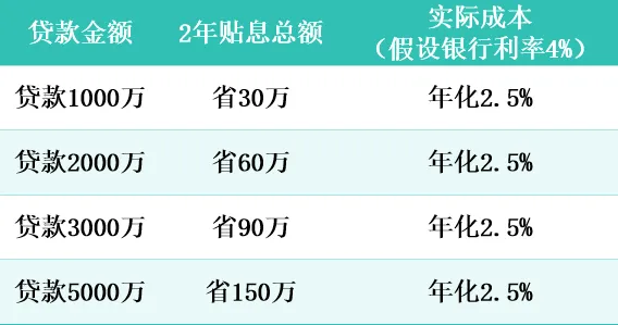 -贴息力度:年化1.5%,最长2年