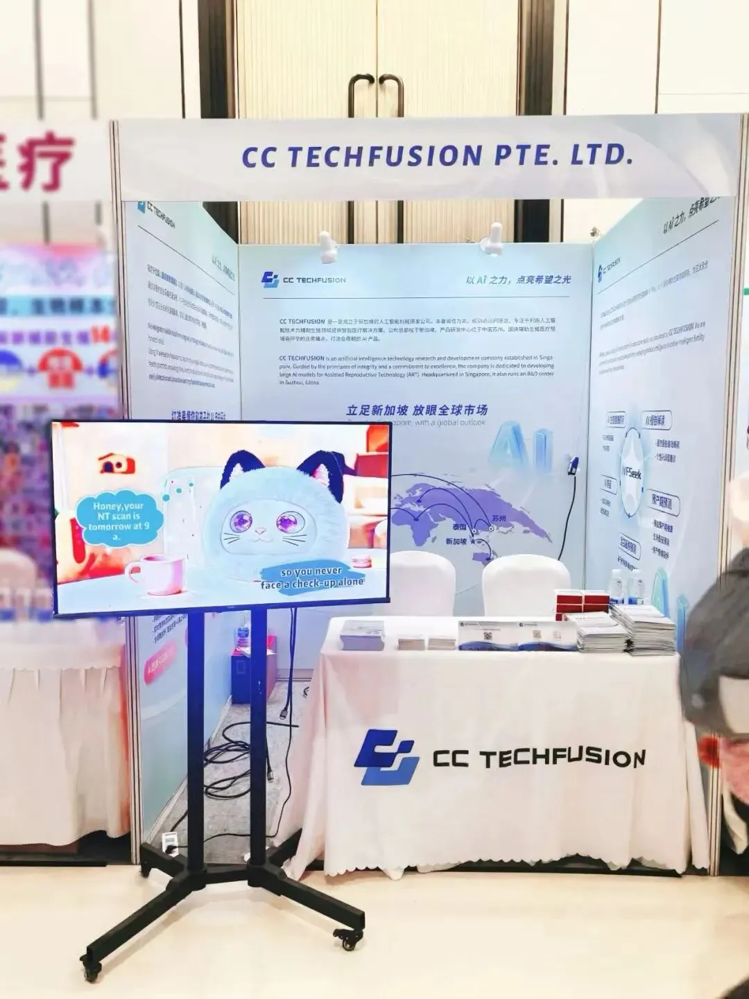 展会期间,CC TECHFUSION 展位前人头攒动,专业观众络绎不绝。作为展会中唯一一家聚焦“AI+生殖健康”全场景应用的科技企业,CC TECHFUSION 带来的两大创新产品成为现场焦点。