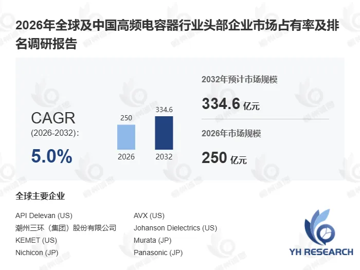 以下内容来自恒州诚思YHResearch出版的《2026年全球及中国高频电容器行业头部企业市场占有率及排名调研报告》,同时提供英文,日文,韩文等不同语种版本报告。