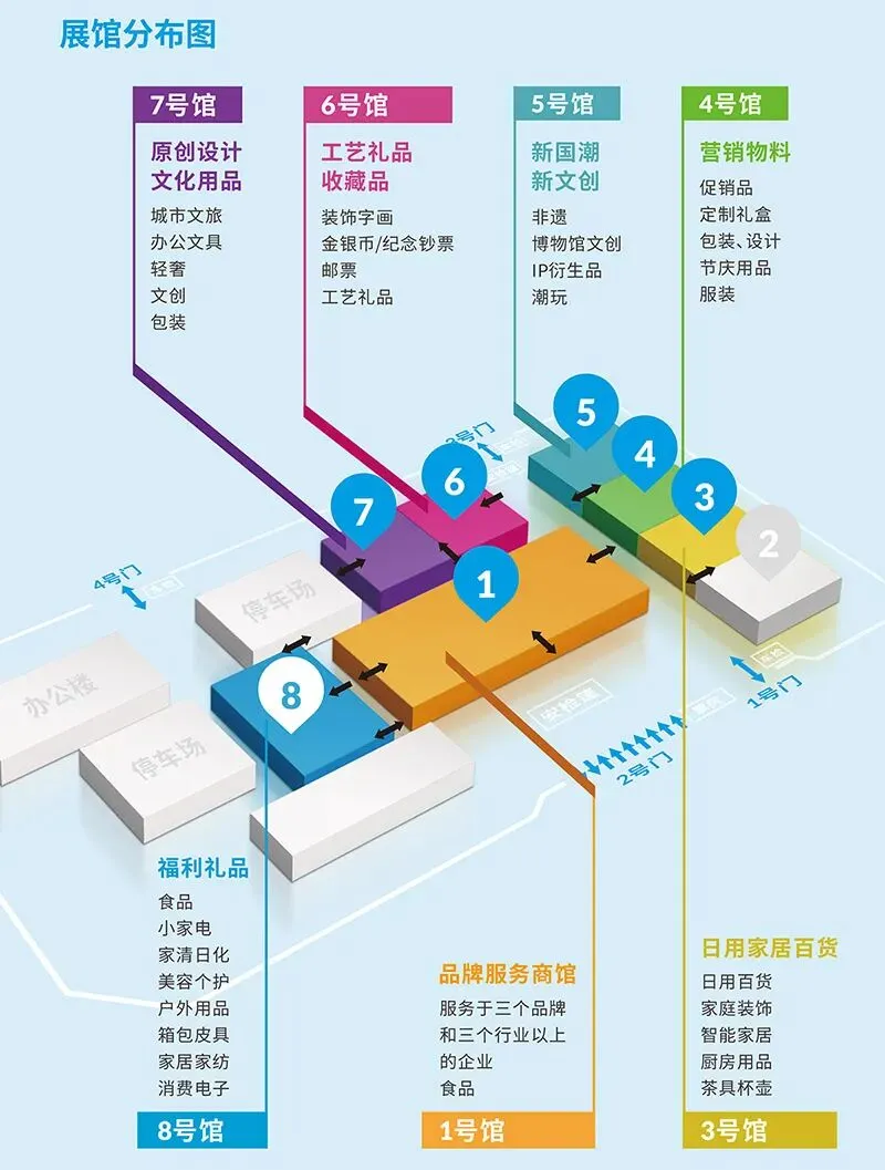 1号馆(一层至三层)2、3、4、5号馆(一层至二层)6、7号馆,8号馆A厅、B厅