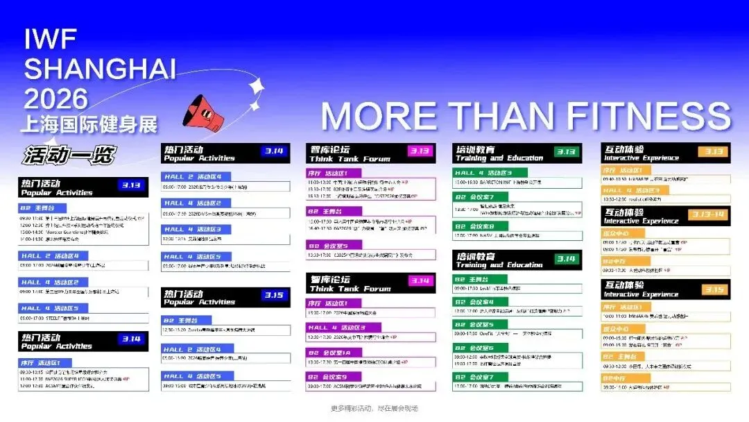 ⏰ 3月13-15日(下周五-周日),IWF2026上海国际健身展暨CIST国际运动用品展将于上海世博展览馆隆重举行。