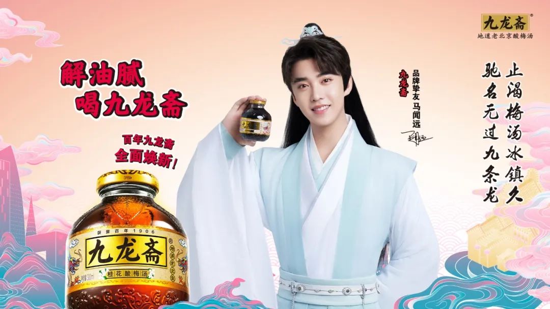 日前,九龙斋也官宣了品牌代言人马闻远,以古风美少年和古法酸梅汤的惊喜碰撞让消费者眼前一亮。
