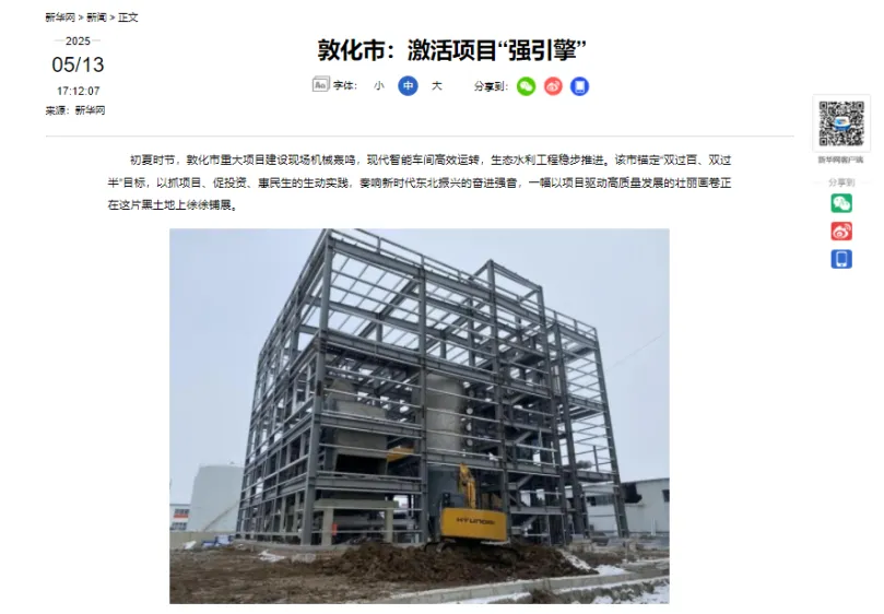 央媒还持续跟踪敦化其他重大产业项目发展。人民网、新华网和中国新闻网刊发《敦化市:激活项目“强引擎”》、《年产7000吨民族食品产业园项目正式投产》和《年产30万吨智能高端配方饲料加工项目已进入试生产阶段》等稿件聚焦项目进程。