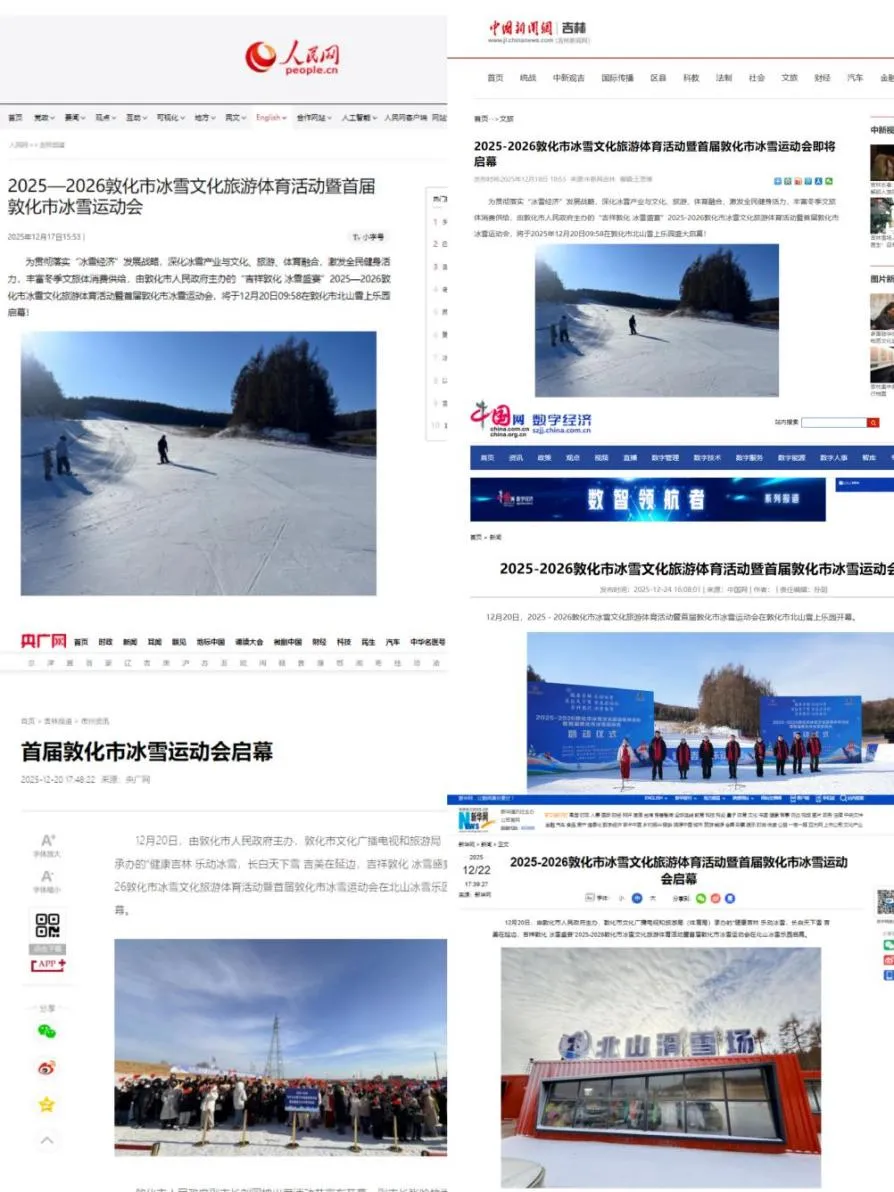 岁末年终,冰雪盛宴盛大开启。敦化市冰雪文化旅游体育活动暨首届敦化市冰雪运动会在北山雪上乐园开幕,滑雪表演、雪合战赛场上的激烈比拼,充分展现出冰雪运动的趣味和团队竞技的魅力。人民网、新华网和央广网、中国新闻网和中国网刊发《2025—2026敦化市冰雪文化旅游体育活动暨首届敦化市冰雪运动会》,记录下冰雪运动的激情瞬间。12月31日,“吉祥敦化 冰雪盛宴——2025-2026穿越林海雪原冰雪自驾活动”在敦化大剧院发车,来自各地的自驾爱好者驾驶车辆向老白山林海雪原挺进。从城市地标到林海雪原,敦化正以“体育+文旅”的深度融合,让“冰天雪地”真正成为造福一方的“金山银山”。