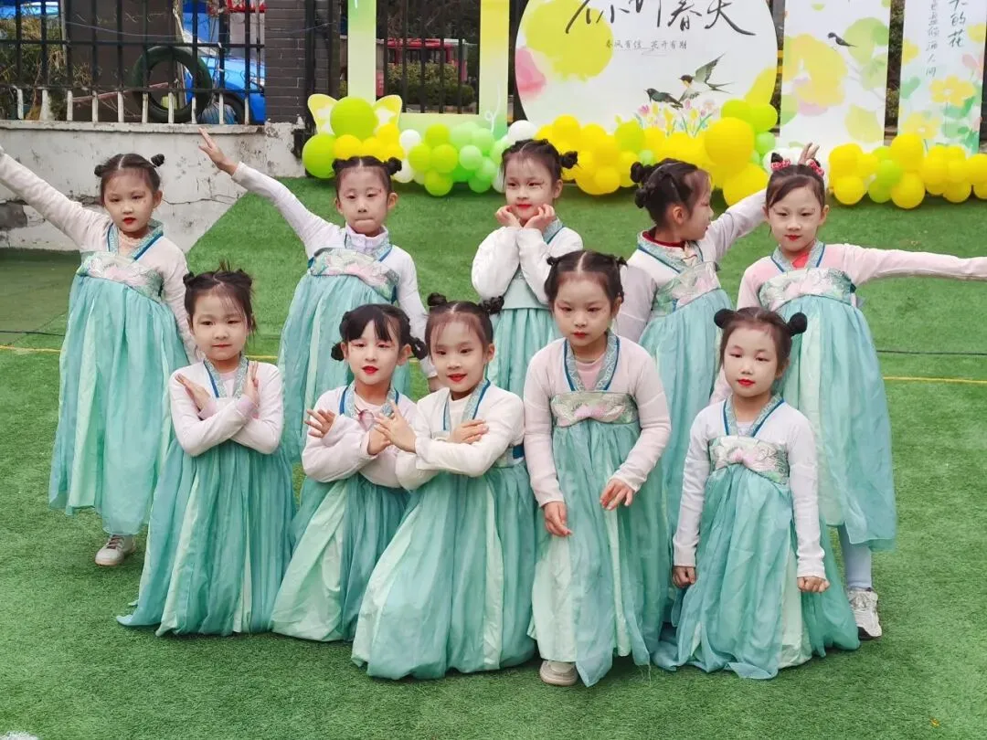 开场舞《桃花朵朵》如春风拂面,小班萌娃手执粉纱桃枝,步履轻盈,笑靥如花;中班孩子演绎律动歌舞《幸福要来到》,用清亮童声唱出对生活的热爱;压轴登场的教师舞蹈《大美人》则惊艳全场——老师们化身国风丽人,扇开云袖、眼波流转,在传统美学中尽显教育者的柔韧与力量。