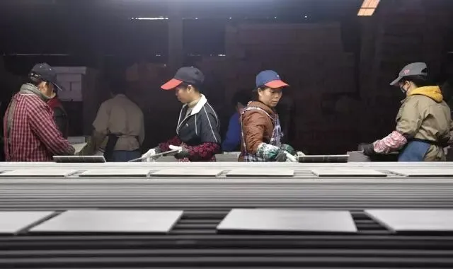 闽清陶瓷生产线上工人在将瓷砖装箱 (图片来源:新华网)