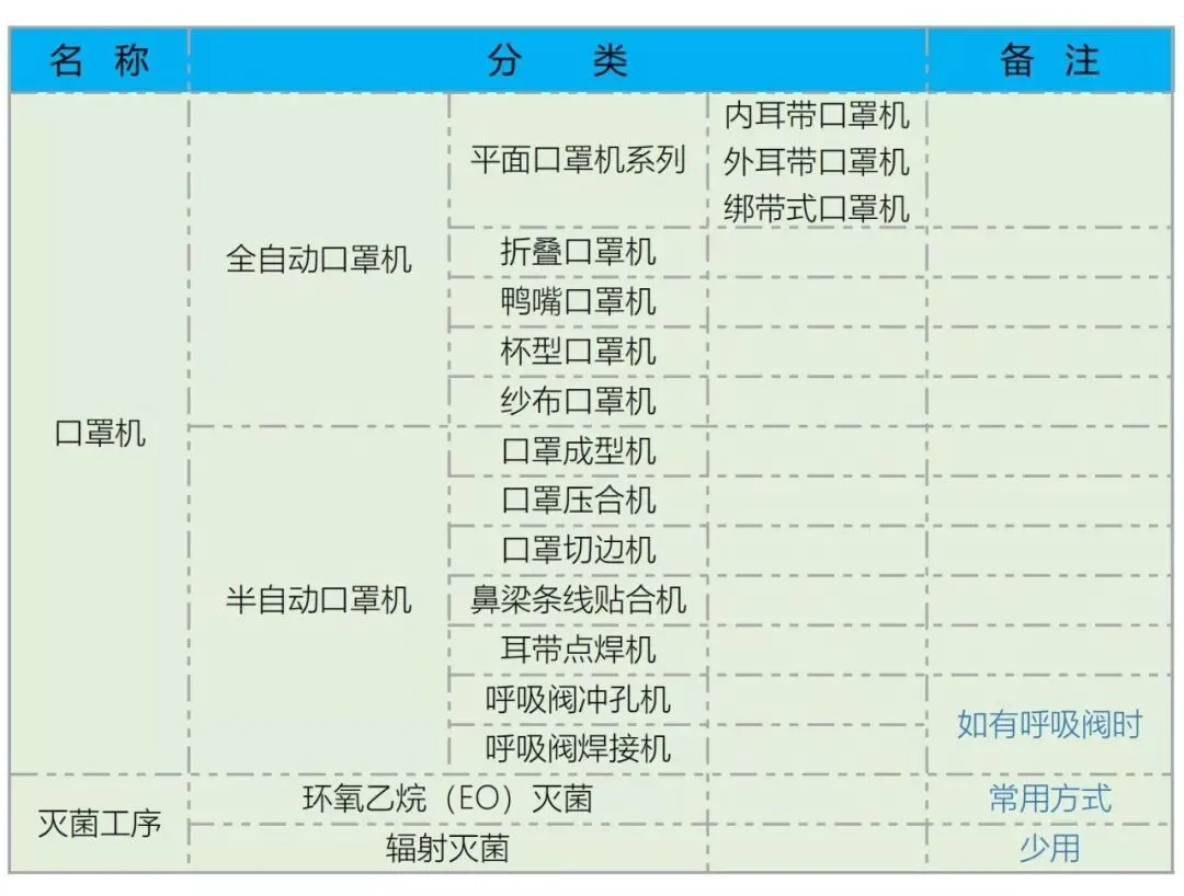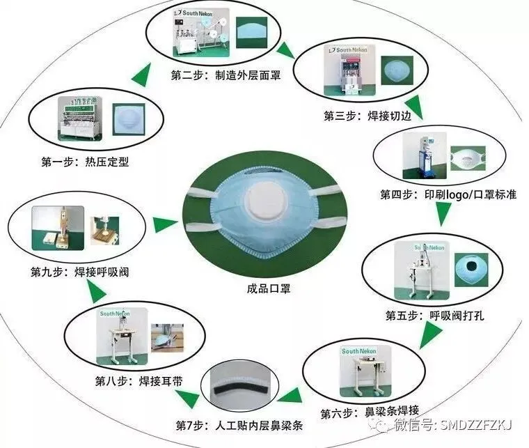 新冠肺炎疫情爆发以来,不仅仅是湖北省口罩匮乏,全国乃至全世界口罩资源也是非常紧缺,一时间“买不到口罩”成了热门的话题,以前的口罩是大家平时生活中可有可无的东西,可现在口罩却成了炙手可热的紧缺货,一个小小的口罩如何能挡住可怕的病毒,今天小编先跟大家梳理一下口罩生产设备及生产工序!Brief introduction of mask machine口罩机是将多层无纺布通过热压、折叠成型,超声波焊接,废料切除,耳带鼻梁条焊接等工序制造出具有一定过滤性能的各种口罩,口罩设备不是单台的机器,它需要多台机器的配合完成各种不同的工序。Classification of respirators口罩机:生产口罩之机械,现市面上的口罩机有:HD-0301平面口罩机、HD-0304杯型口罩机、鸭嘴口罩机、折叠口罩机、纱布口罩机等。平面口罩机系列根据耳带的焊接方式和使用方法不同可以分为:内耳带口罩机,外耳带口罩机,绑带式口罩机,生产这三种平面口罩都需要用到口罩本体机,它是组成平面口罩不可或缺的部分。口罩的整个生产工序还是比较多的,尤其是后续消毒环节,这就是为什么0.5秒造一个口罩,这么快的生产效率却依然口罩紧缺的原因了,了解口罩生产工序首先从口罩本身组成结构说起,我们剪开一个医用口罩,可以发现口罩是有三层无纺布的,这也是医用口罩国家标准要求的,否则就达不到防护的要求。上图:剪开的医用口罩;右图:医用口罩一般简称SMS结构制作口罩,原材料纤维全部都是聚丙烯(Polypropylene,简称PP),医用口罩一般简称SMS结构。