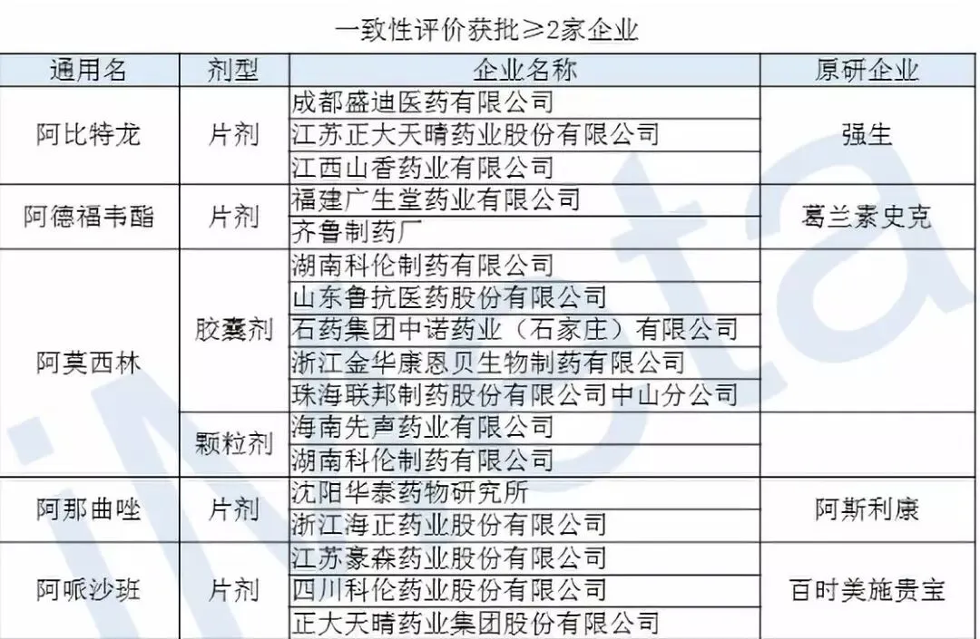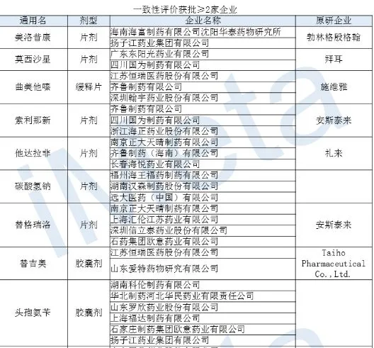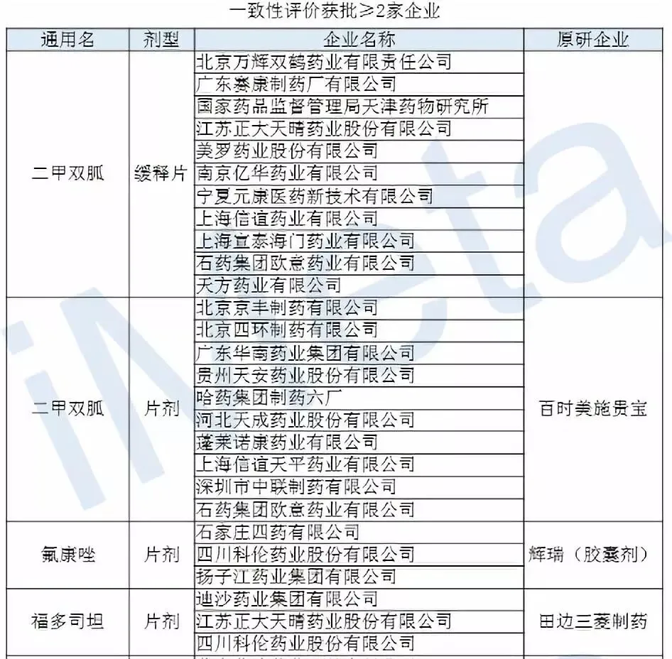(注:以上是根据最多三家中选的集采规则,梳理的截至今日过一致性评价数多于两家药企的品种,如有不全请指正)