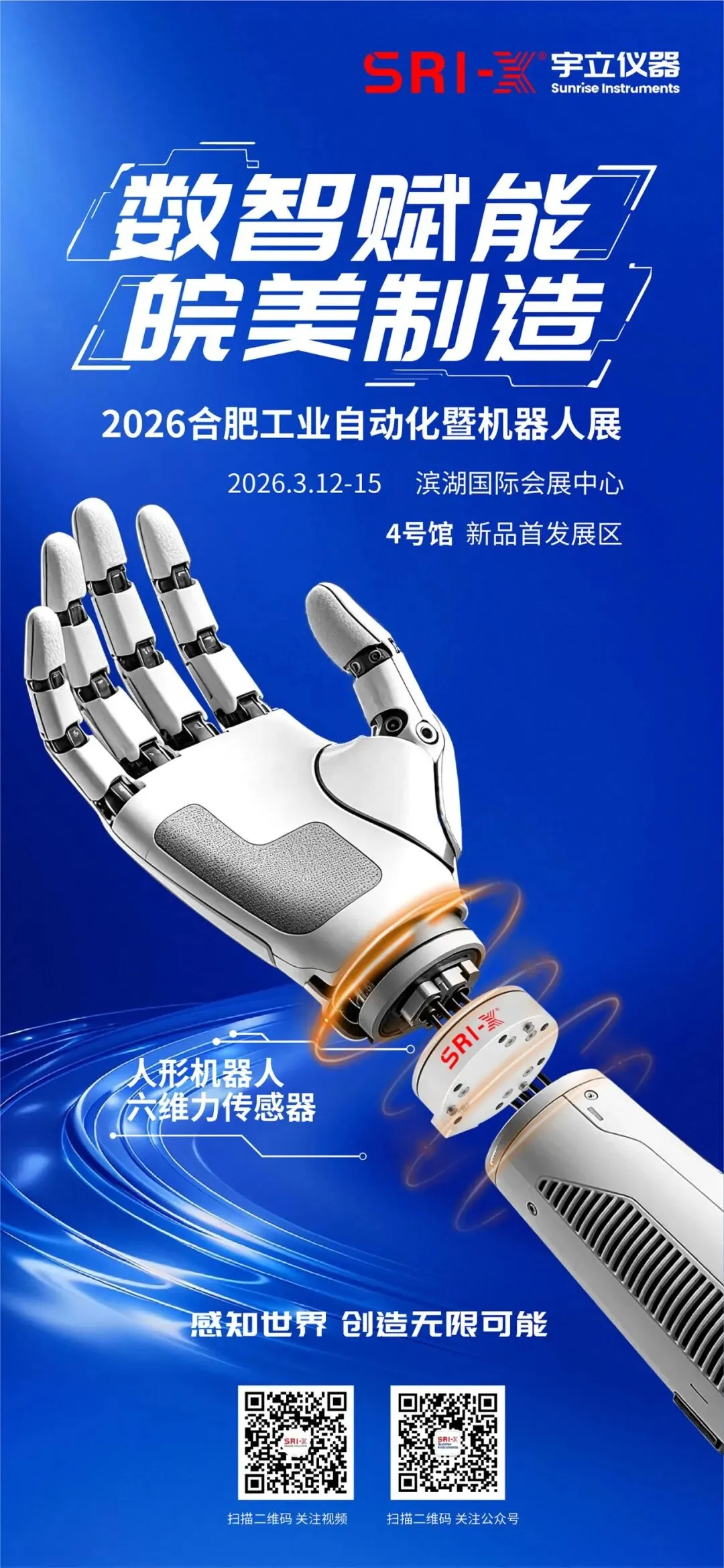 2026 合肥国际工业自动化暨机器人展将于2026 年 3 月 12 日 —15 日在合肥滨湖国际会展中心举办。宇立仪器重磅亮相4 号馆新品首发区,携人形机器人专用六维力传感器、扭矩传感器、信号采集模块等系列核心产品参展。展会首日(3 月 12 日 10:30),我们将举办专场产品演讲,解读新品技术。诚邀各界伙伴莅临展位交流洽谈,共探技术合作与产业发展机遇,我们将竭诚为您提供专业的产品服务与一站式解决方案。合肥国际工业自动化暨机器人展将辐射长三角地区,集中展示智能制造及工业自动化领域的最新技术和解决方案。展会将聚焦高端智能装备、自动化与机器人、工业互联网、人工智能与数字化工厂等技术,并为国内外制造商和采购商搭建业务洽谈和学术交流的平台。2026 年 3 月 12 日 —15 日在合肥滨湖国际会展中心举办。宇立仪器重磅亮相4 号馆新品首发区,莅临展位交流洽谈,共探技术合作与产业发展机遇,我们将竭诚为您提供专业的产品服务与一站式解决方案。