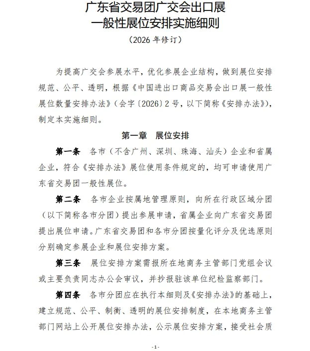 为做好广交会组展参展工作,现将《广东省交易团广交会出口展一般性展位安排实施细则》(以下简称“《实施细则》”)转发给你们。结合我市外贸高质量发展工作,就有关事项明确如下: